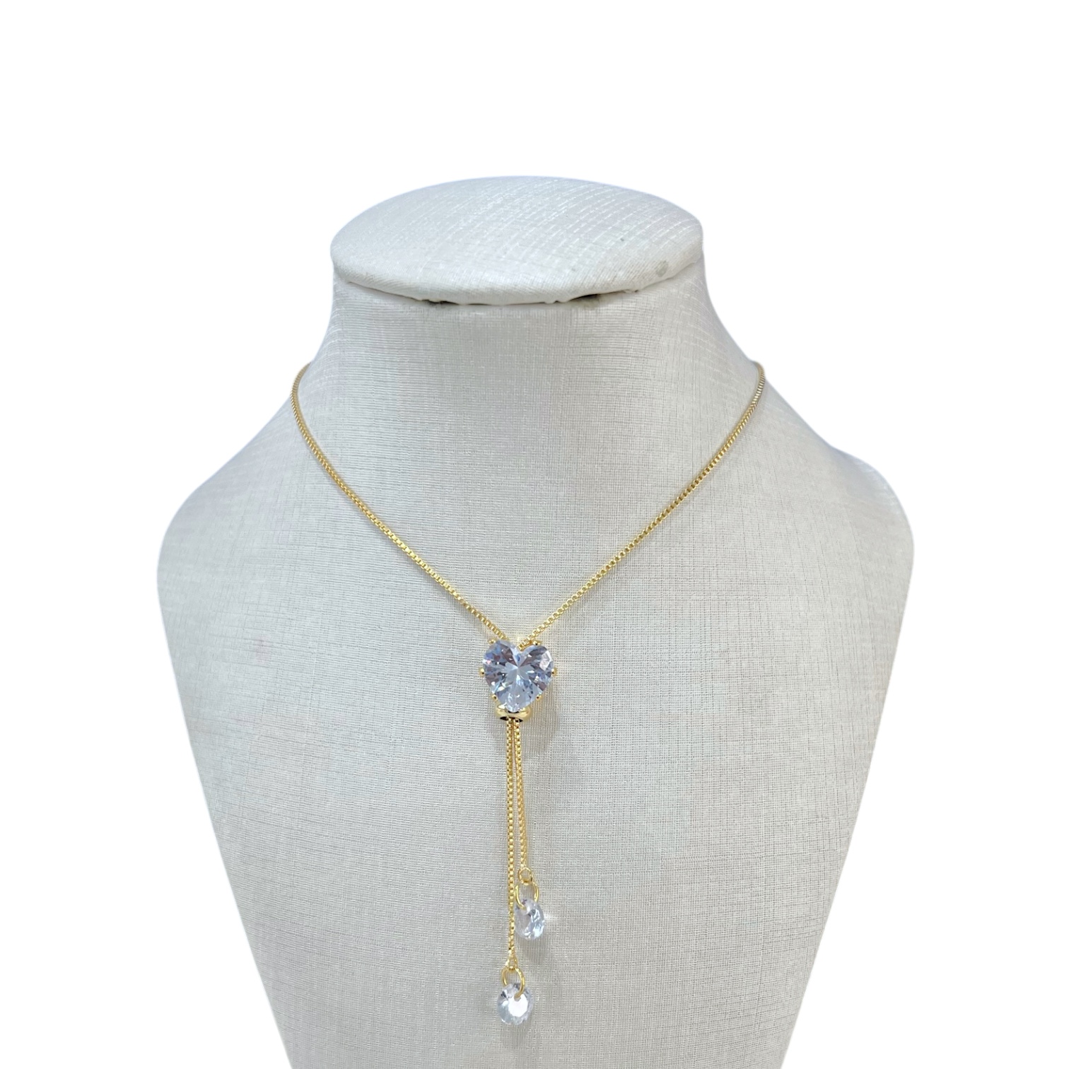 Colar Folheado Ouro 18k e Prata 925 Gravatinha Coração Cristal