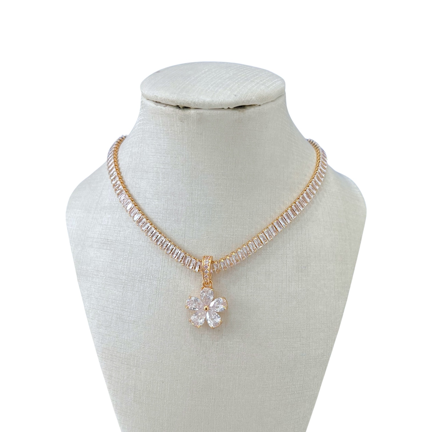 Colar Folheado Ouro 18k e Prata 925 Riviera Flor Cravejada