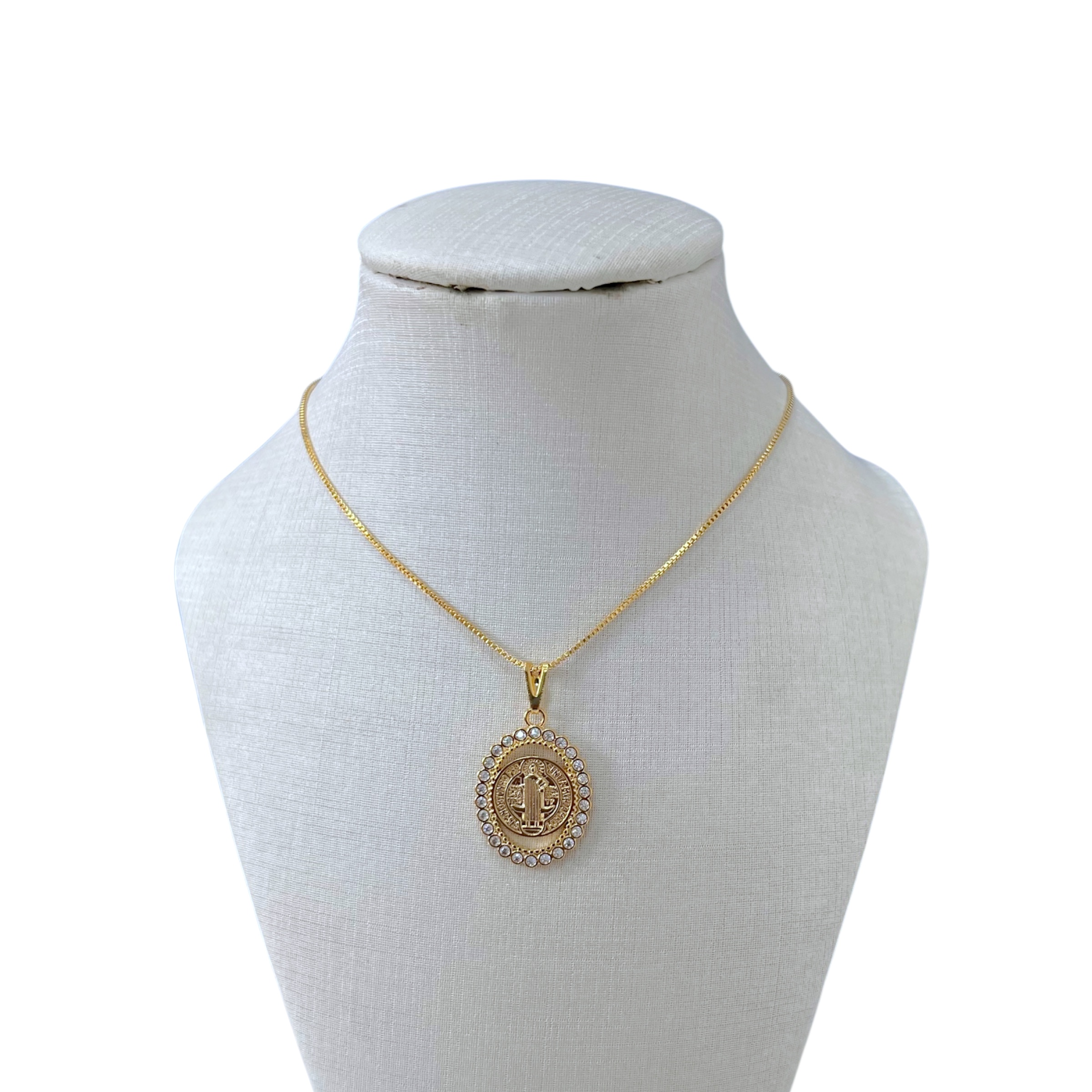 Colar Folheado Ouro 18k e Prata 925 São Bento Cravejado