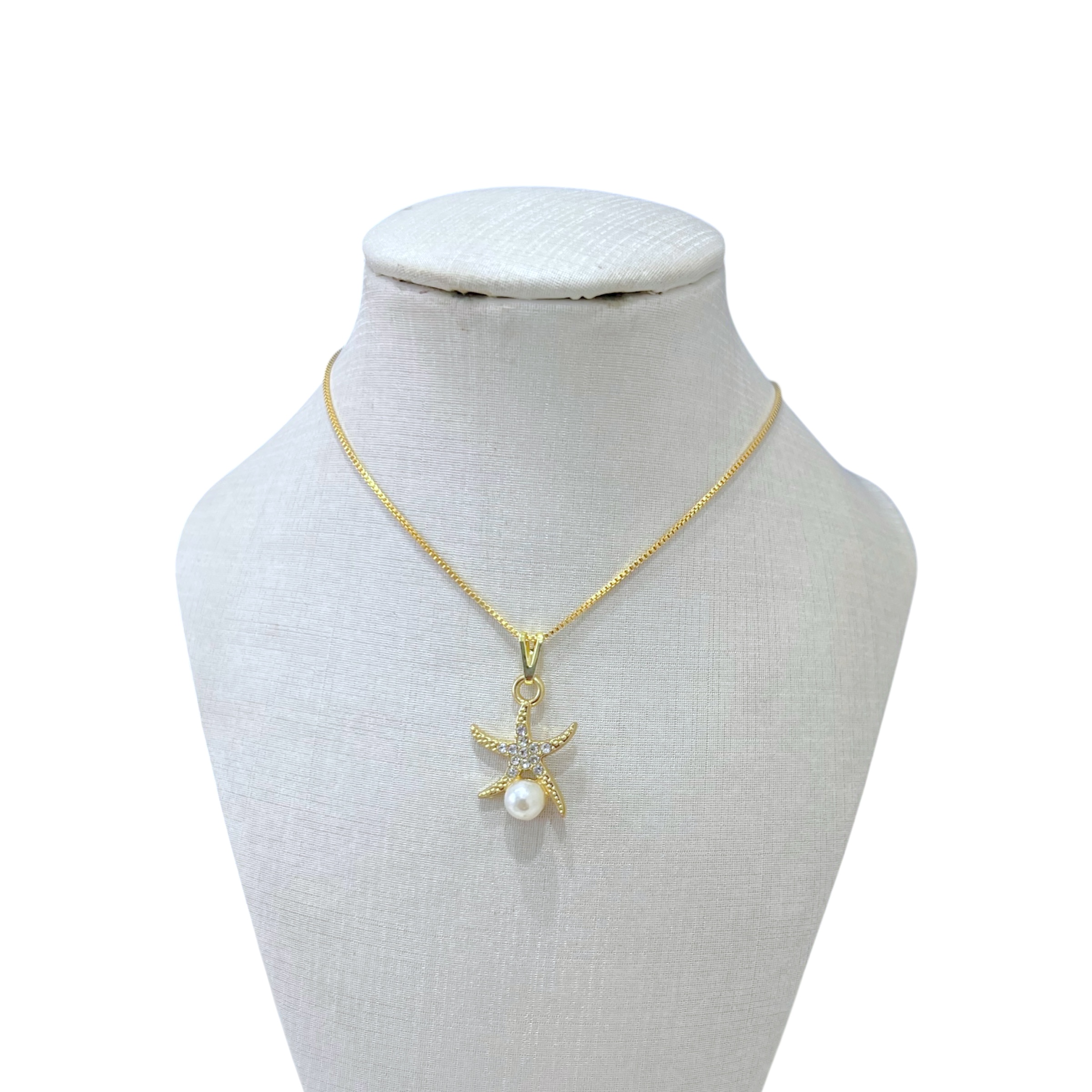Colar Folheado Ouro 18k Estrela Pérola Strass