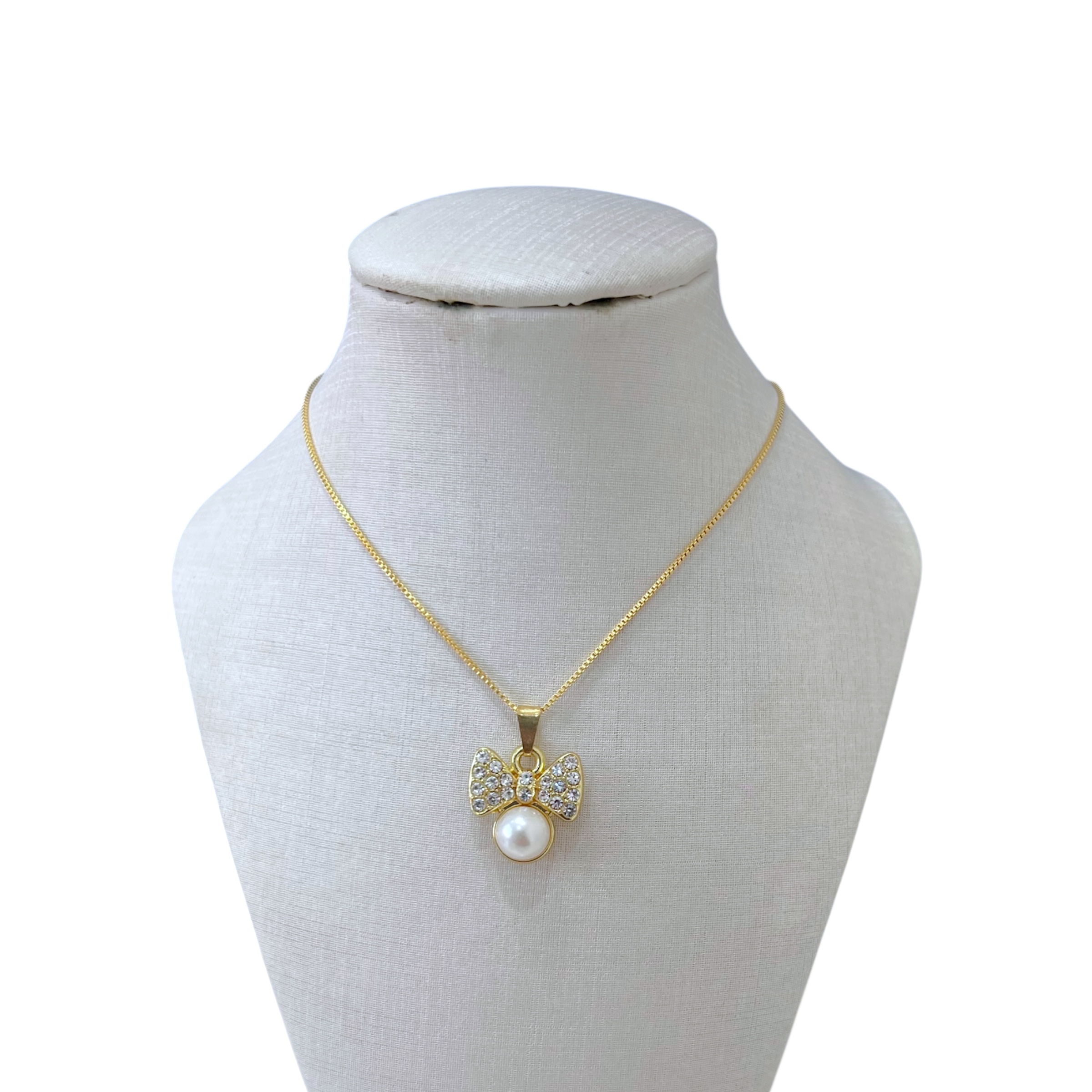 Colar Folheado Ouro 18k Laço Pérola Strass