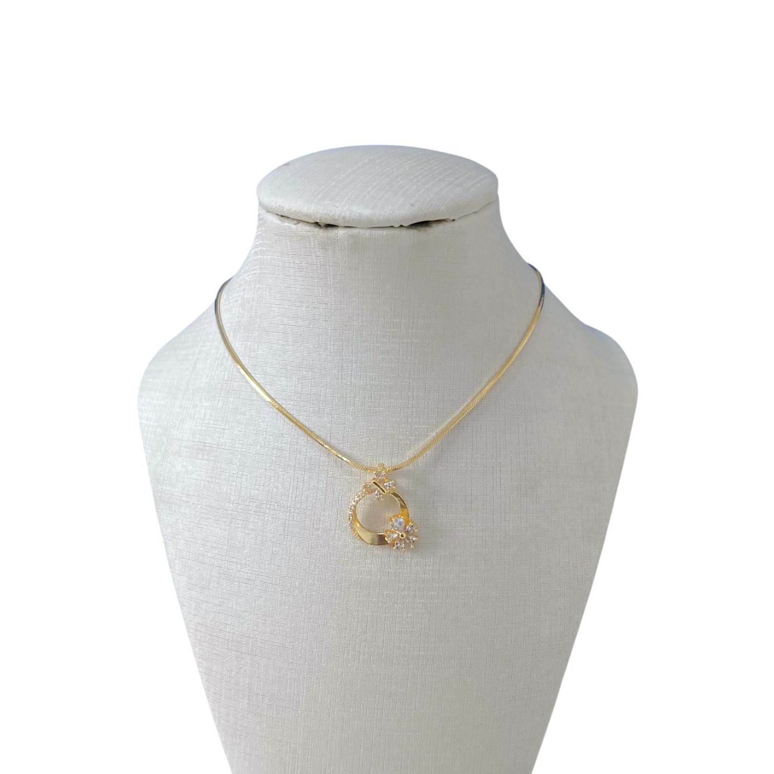Colar Folheado Ouro 18k Laminada Mandala Borboleta e Flor Cravejada