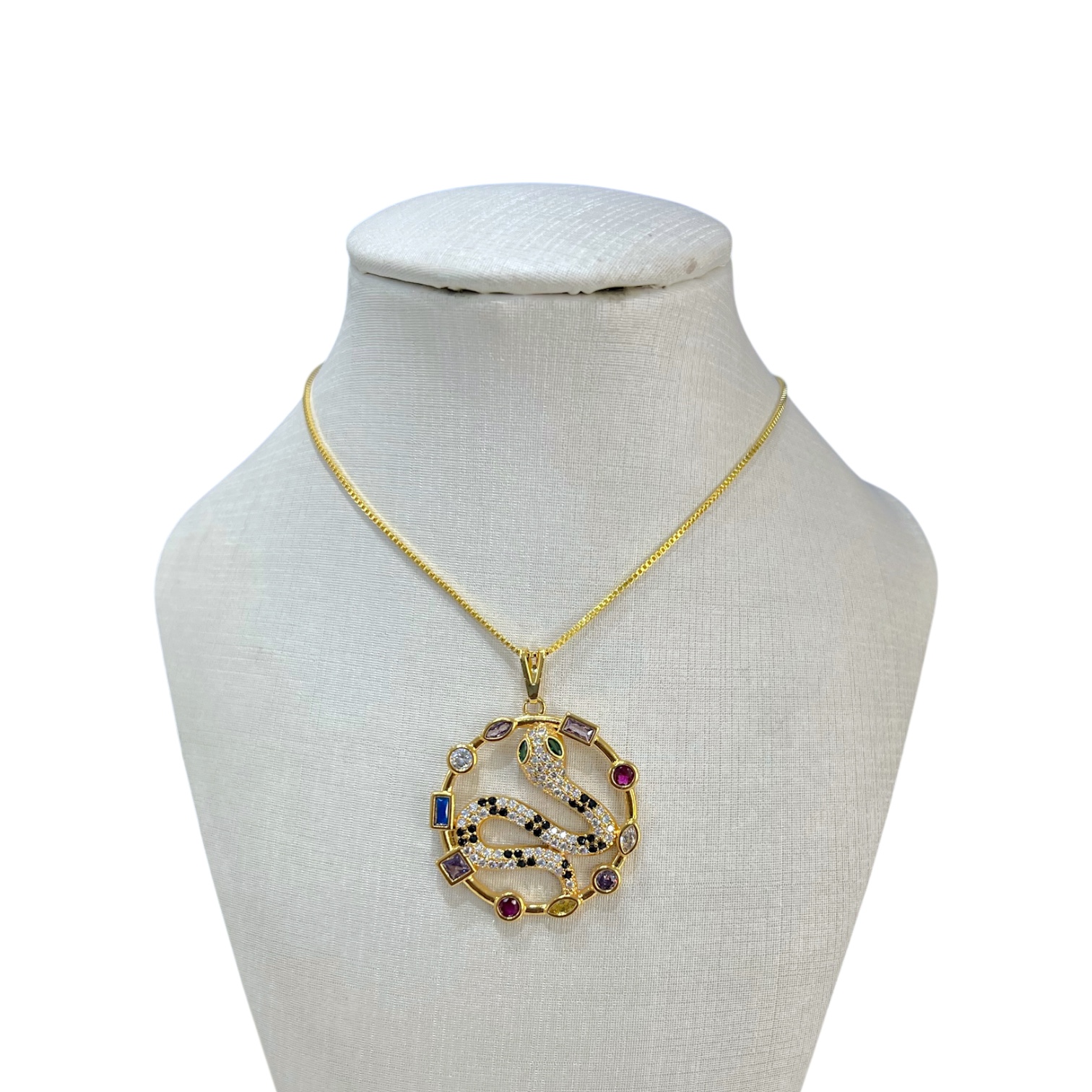 Colar Folheado Ouro 18k Mandala Serpente Cravejada
