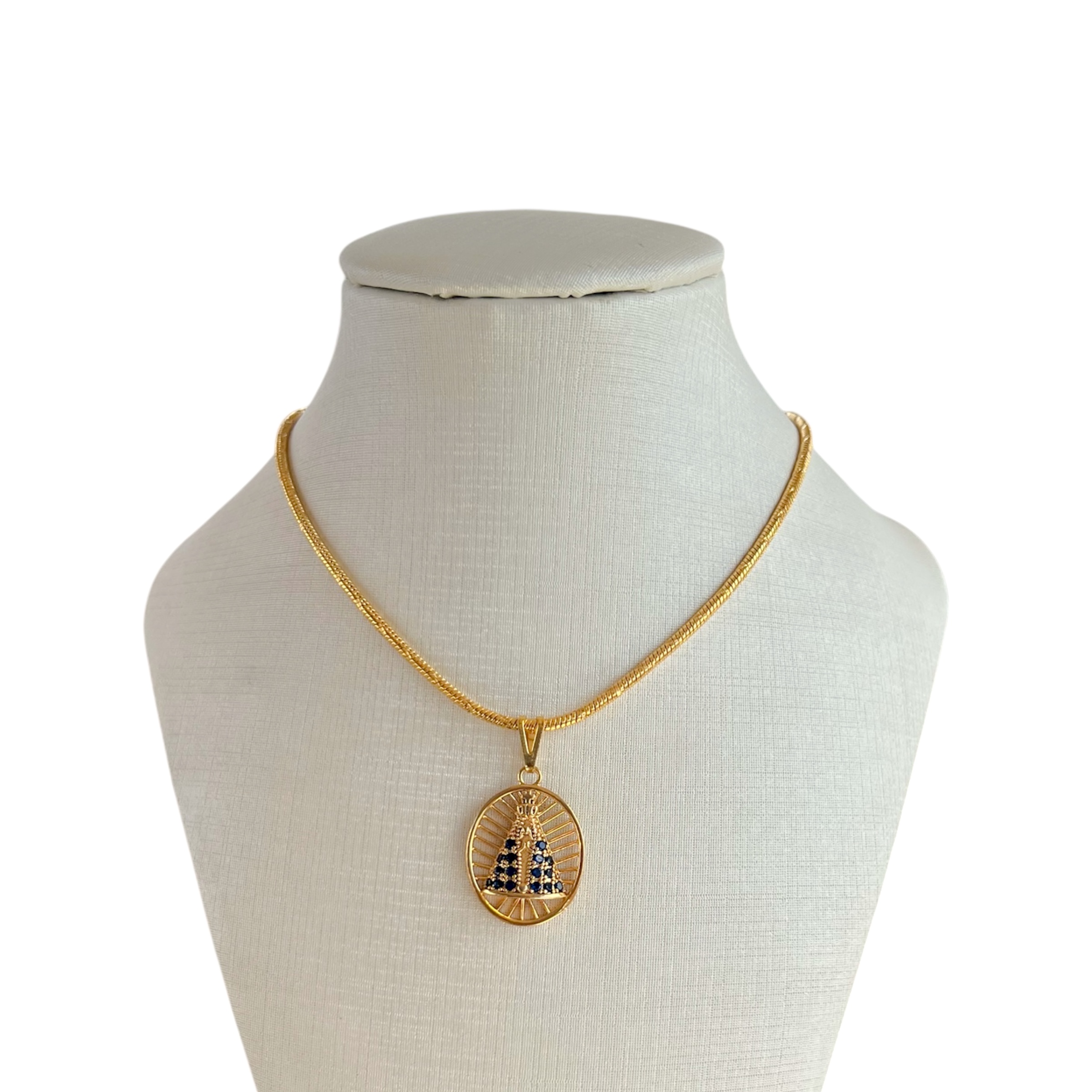 Colar Folheado Ouro 18k Nossa Senhora Cravejada