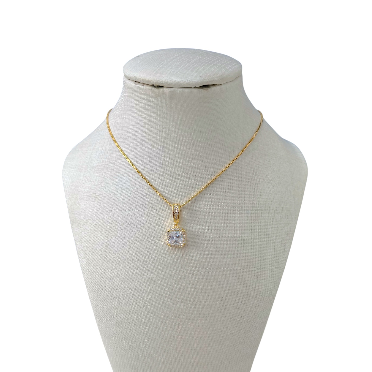 Colar Folheado Ouro 18k Quadrado Cravejado