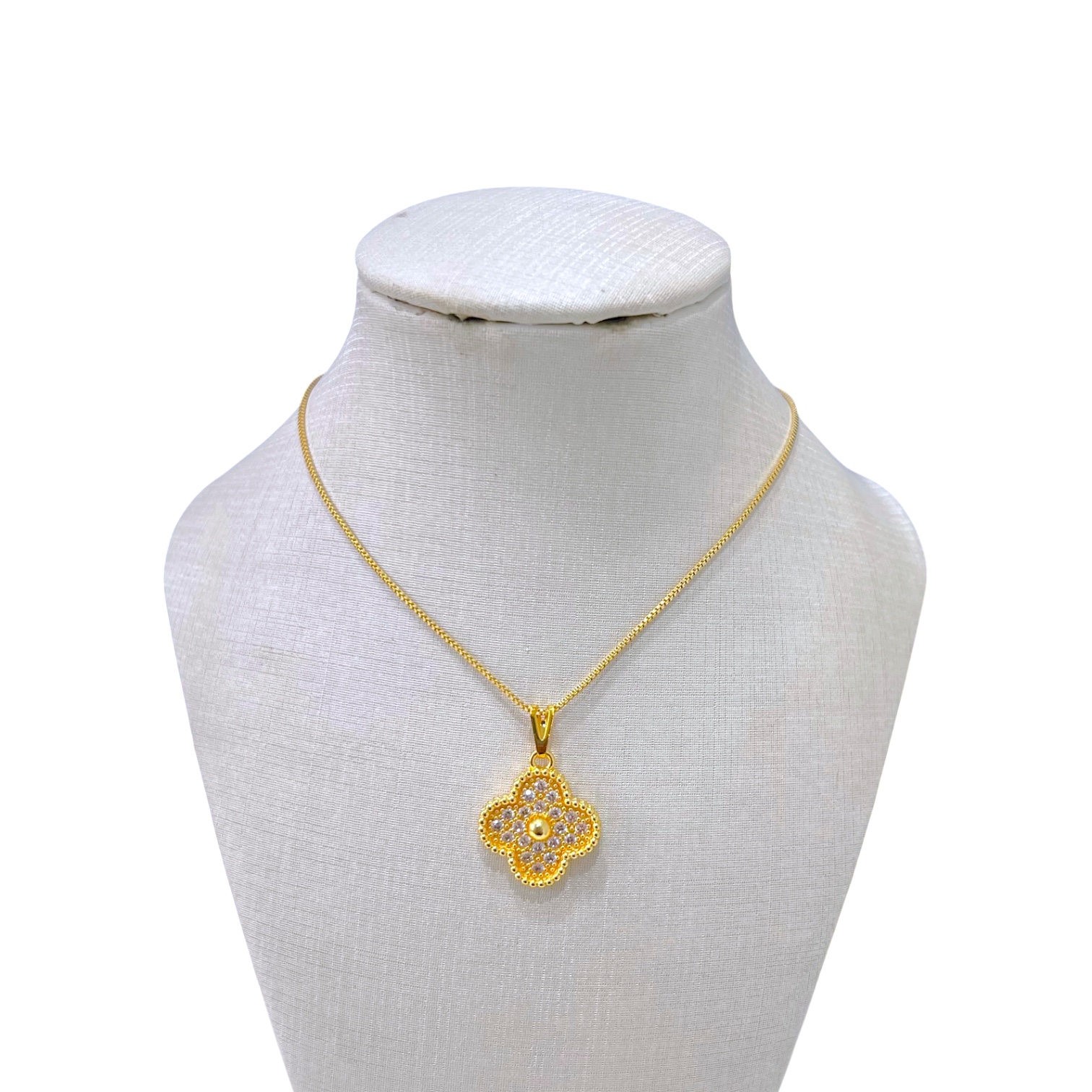 Colar Folheado Ouro 18k Trevo Inspired Cravejado