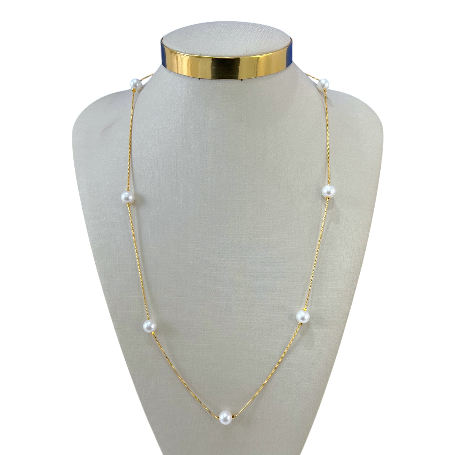 Colar Longo Folheado Ouro 18k Bolinhas Pérolas