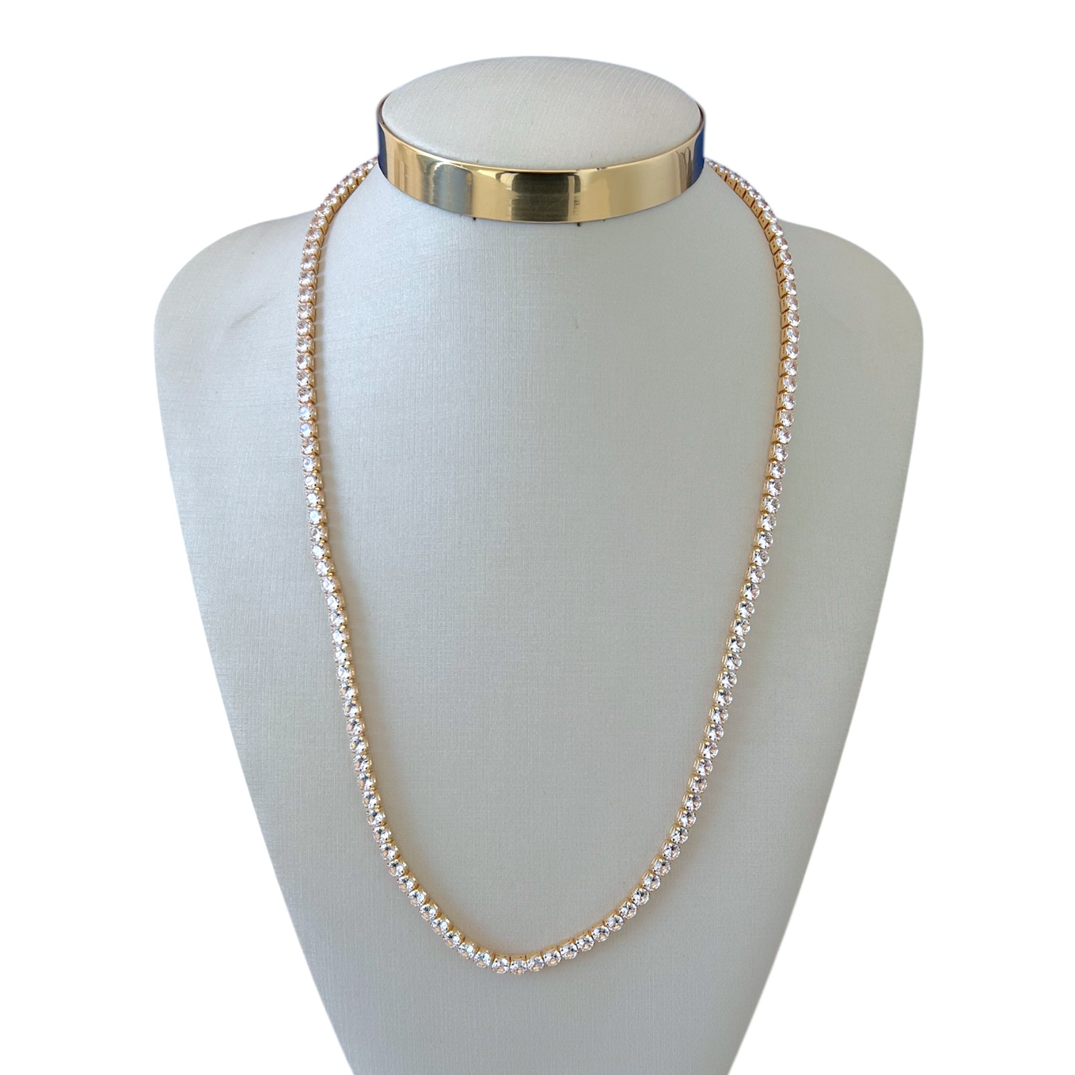 Colar Longo Folheado Ouro 18k e Prata 925 Riviera Trava Grossa