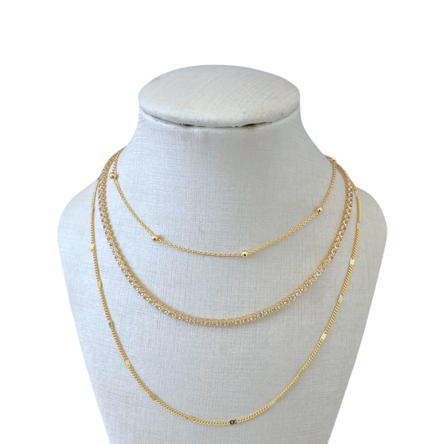 Colar Triplo Folheado Ouro 18k Riviera Corações