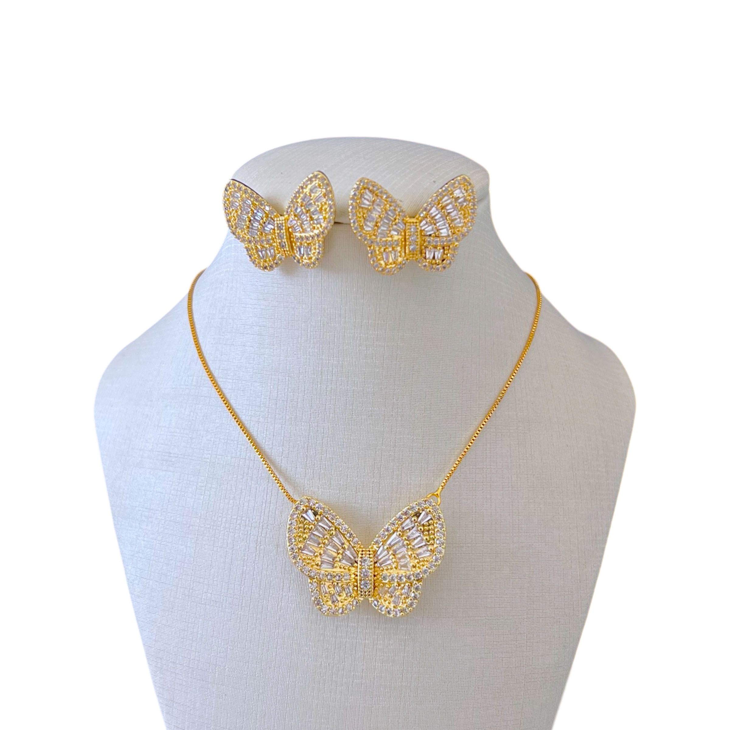 Conjunto Folheado Ouro 18k e Prata 925 Borboleta Cravejada