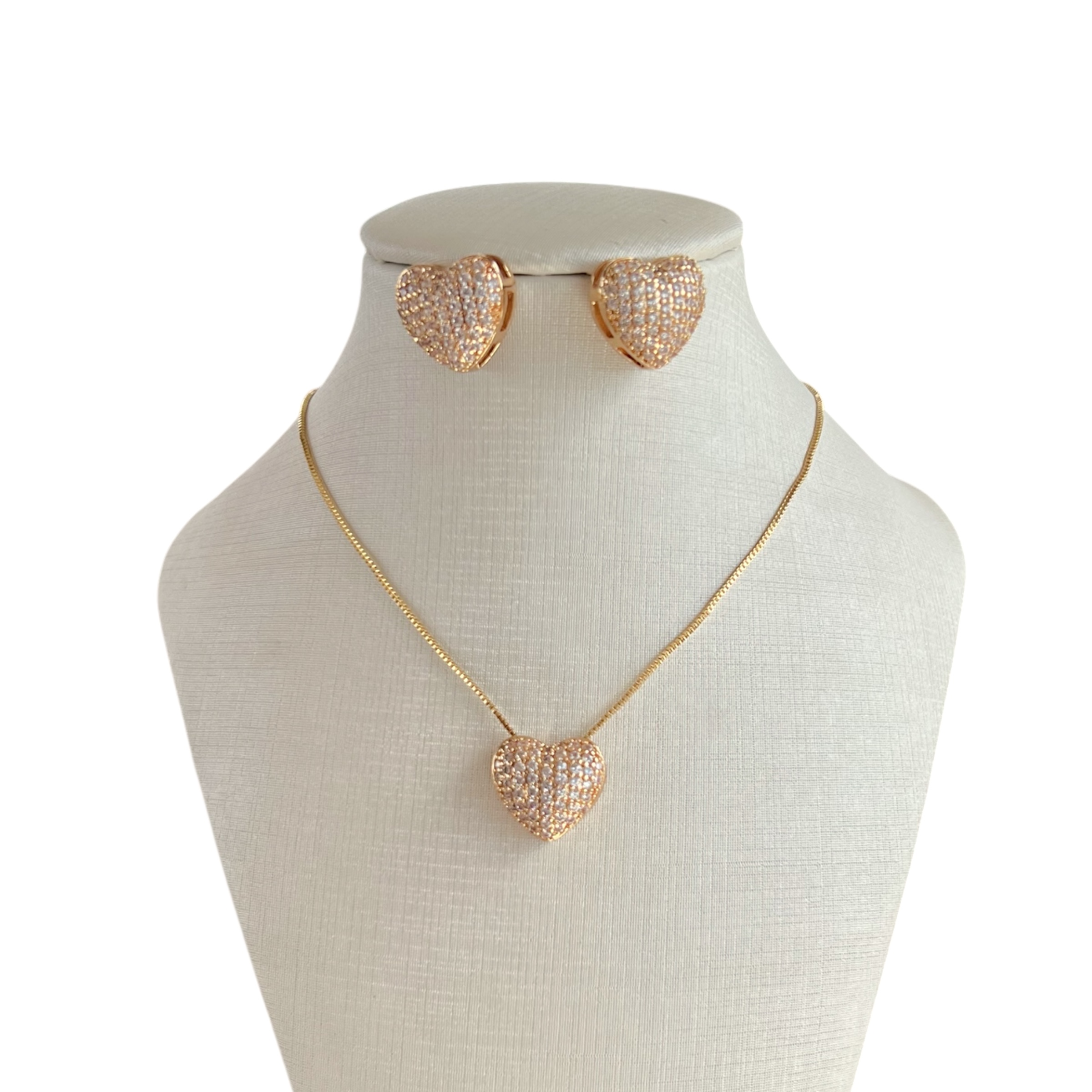 Conjunto Folheado Ouro 18k e Prata 925 Coração Cravejado