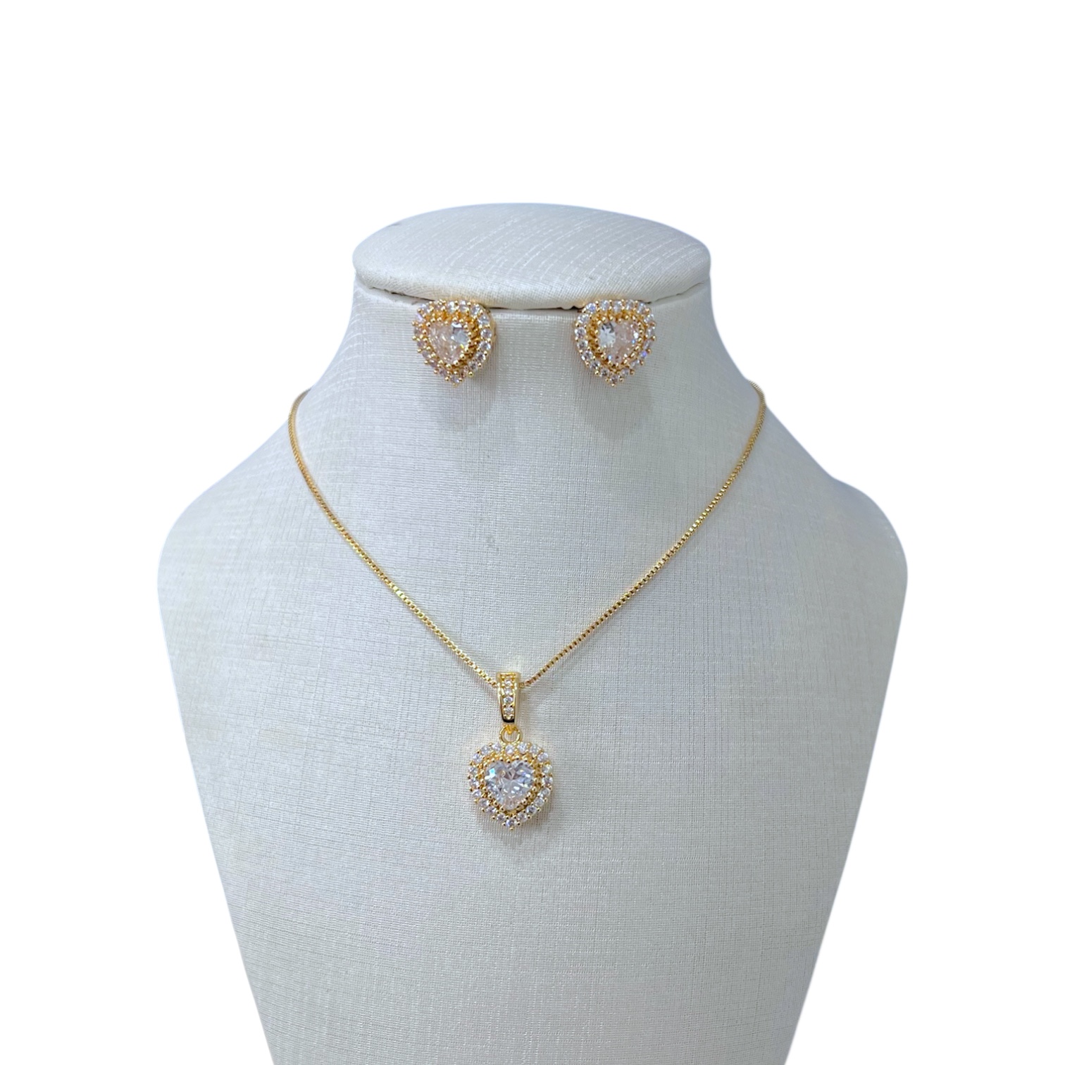 Conjunto Folheado Ouro 18k e Prata 925 Coração Cravejado