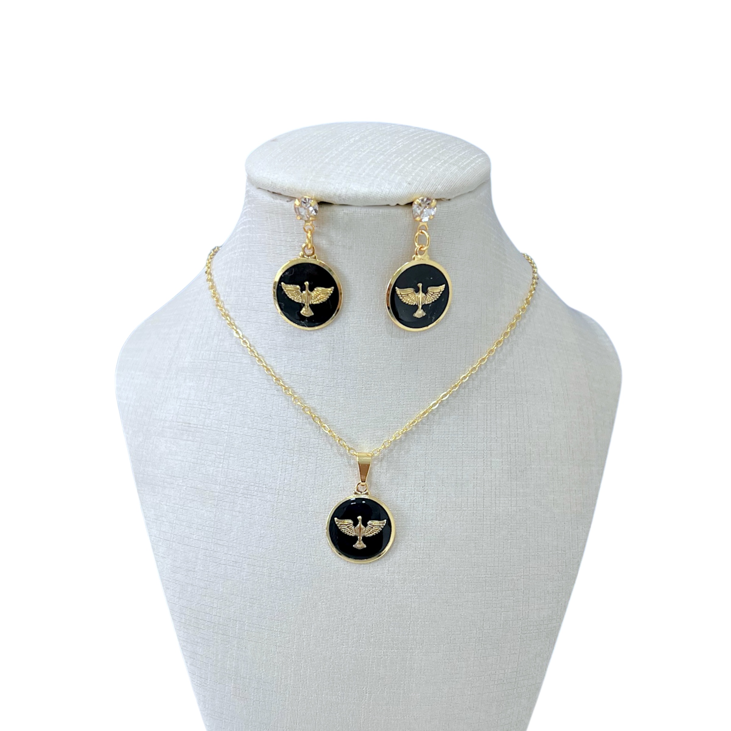 Conjunto Folheado Ouro 18k e Prata 925 Espírito Santo Pintado