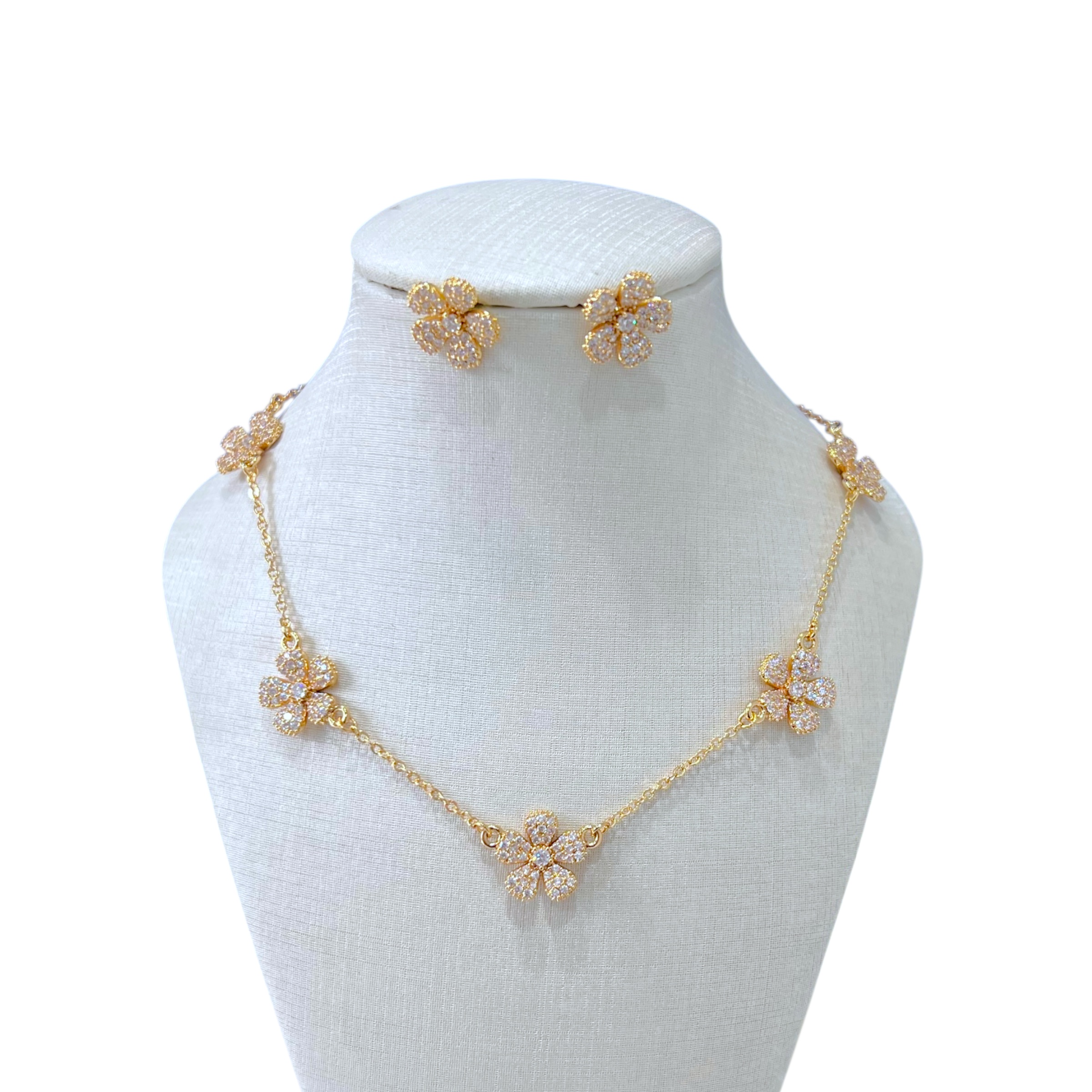 Conjunto Folheado Ouro 18K e Prata 925 Flor Cravejada