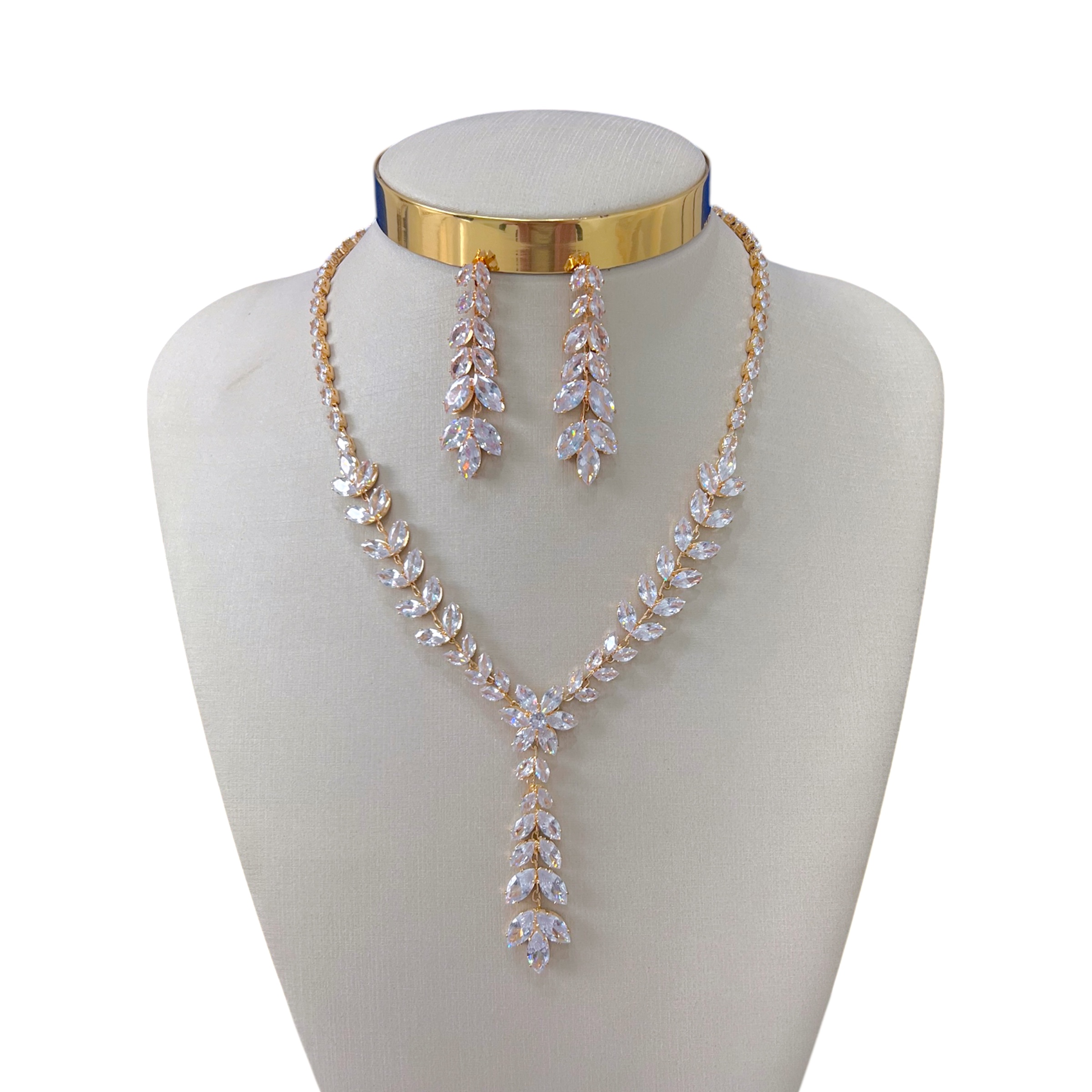 Conjunto Folheado Ouro 18k e Prata 925 Folhas Riviera Cravejada