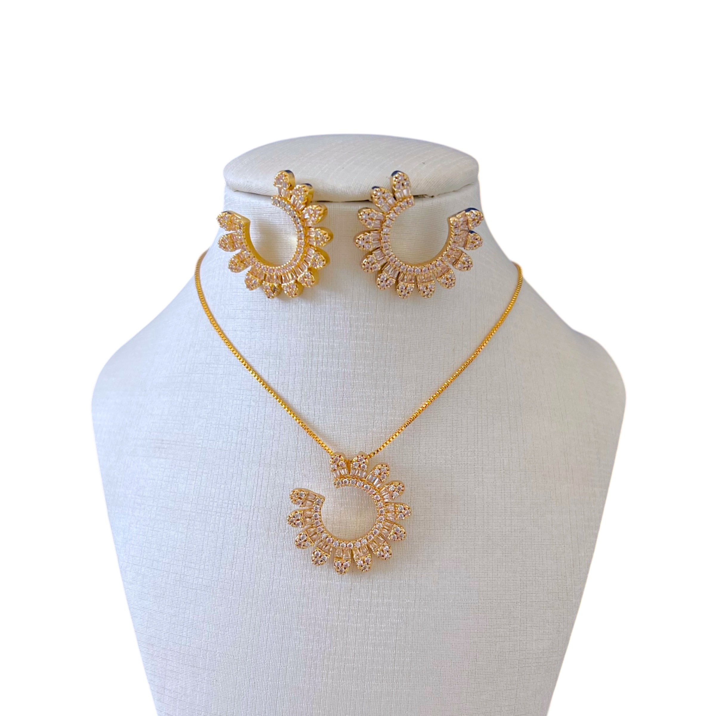 Conjunto Folheado Ouro 18k e Prata 925 Mandala Cravejada