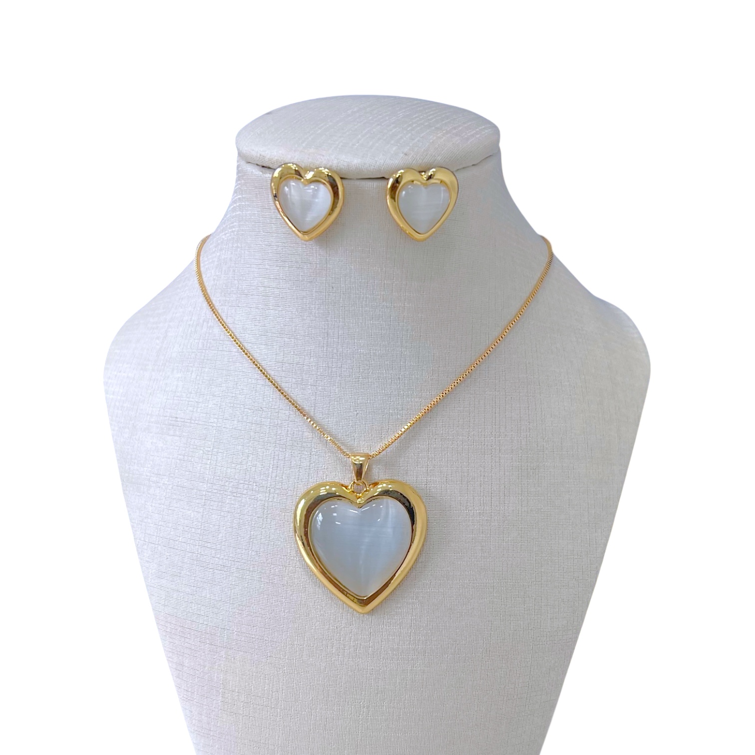 Conjunto Folheado Ouro 18k e Prata 925 Pedraria Coração