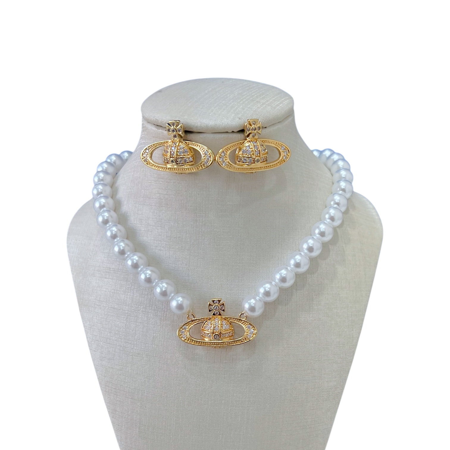 Conjunto Folheado Ouro 18k e Prata 925 Planeta Inspired Cravejado
