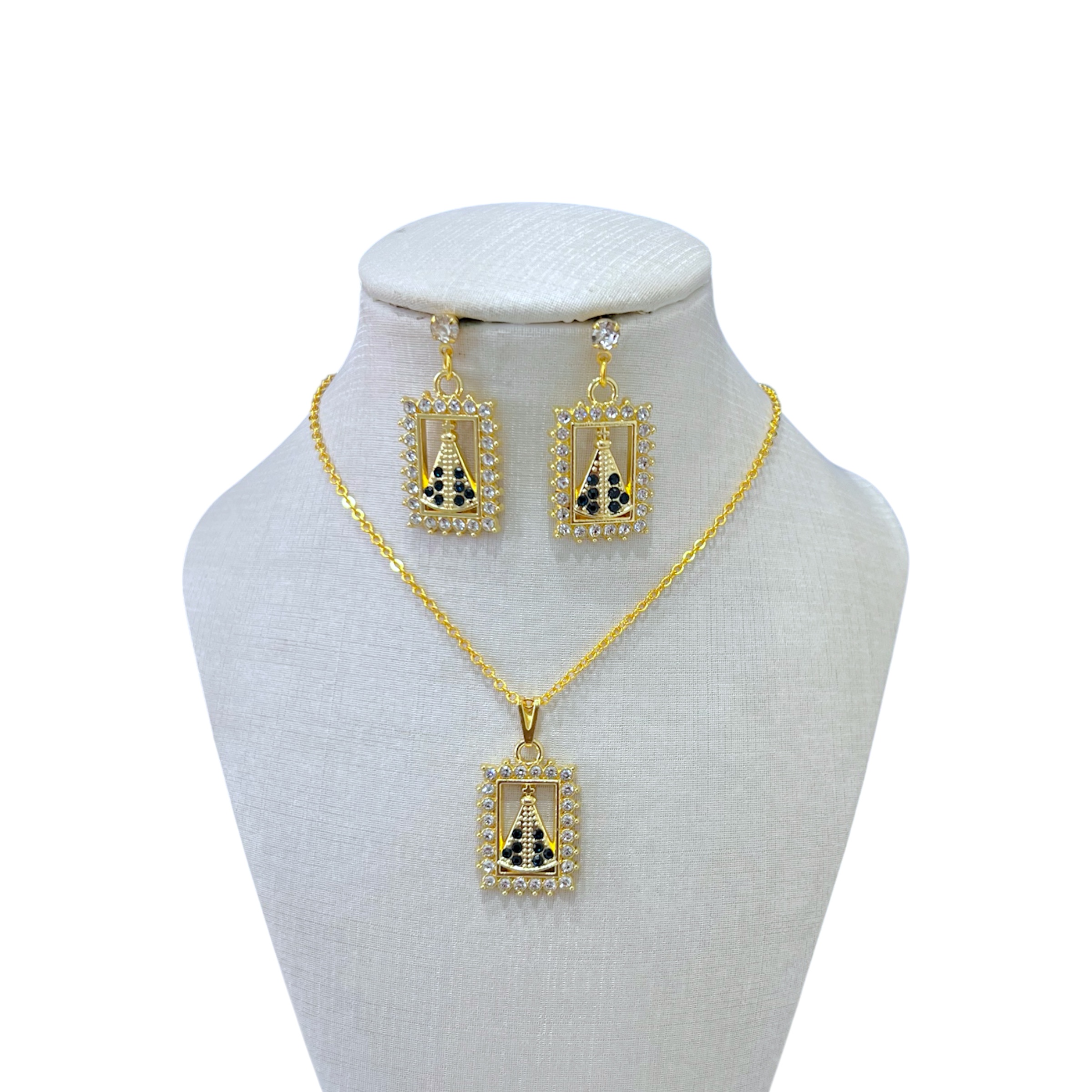 Conjunto Folheado Ouro 18k Nossa Senhora Strass