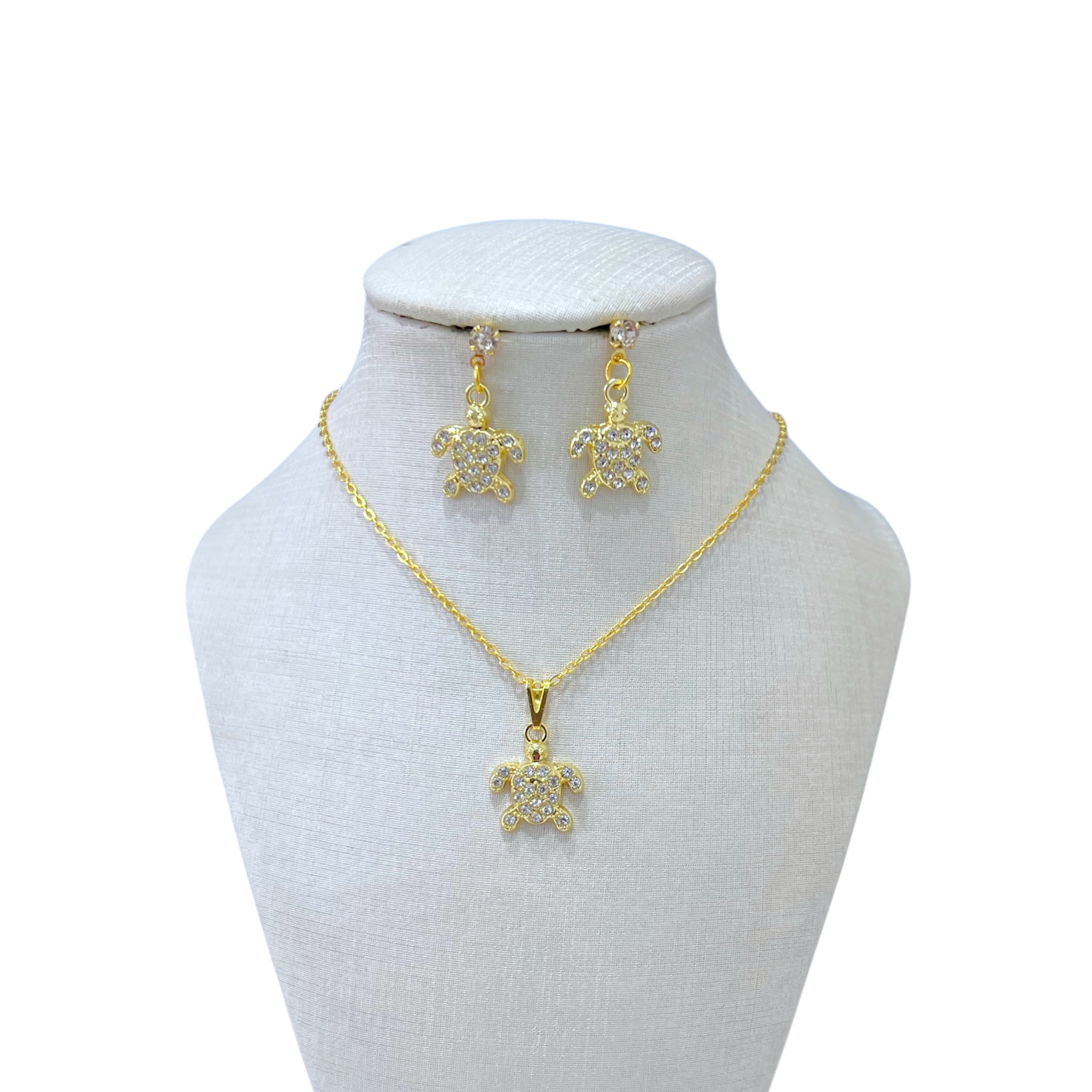 Conjunto Folheado Ouro 18k Tartaruga Strass