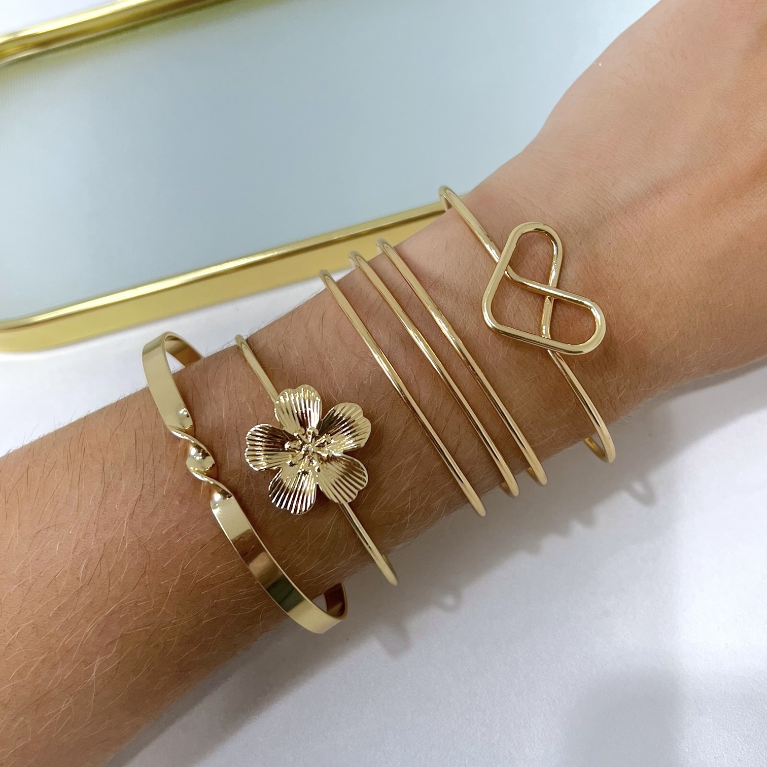 kit 4 Bracelete Bijuteria Dourado e Prata Flor