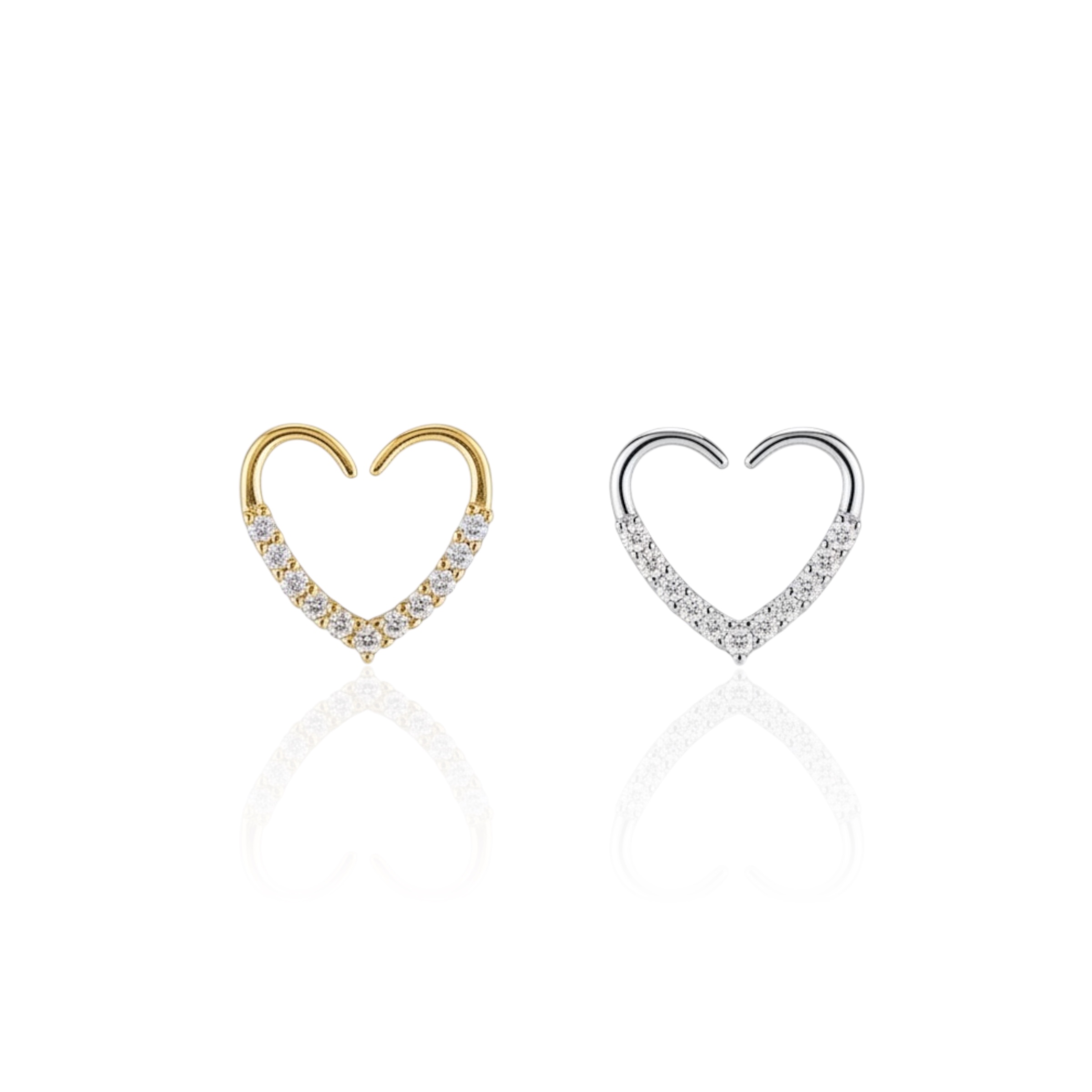 Piercing Aço Inoxidável Dourado e Prata Daith Coração Cravejado