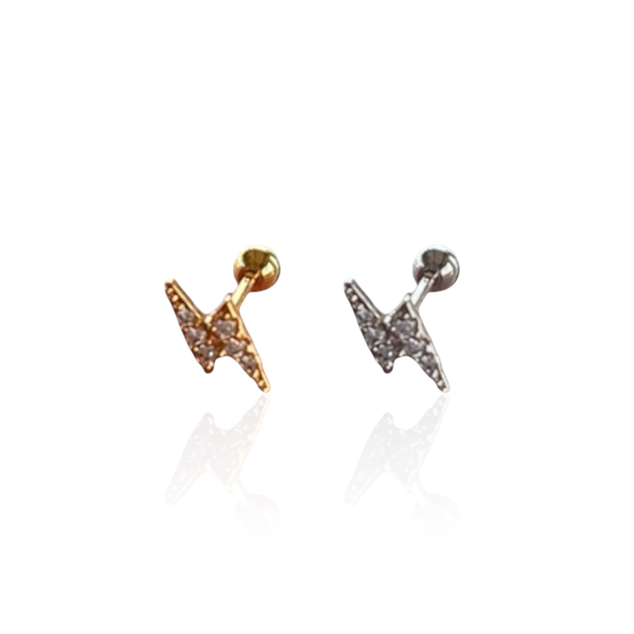 Piercing Aço Inoxidável Dourado e Prata Tragus Raio Cravejado