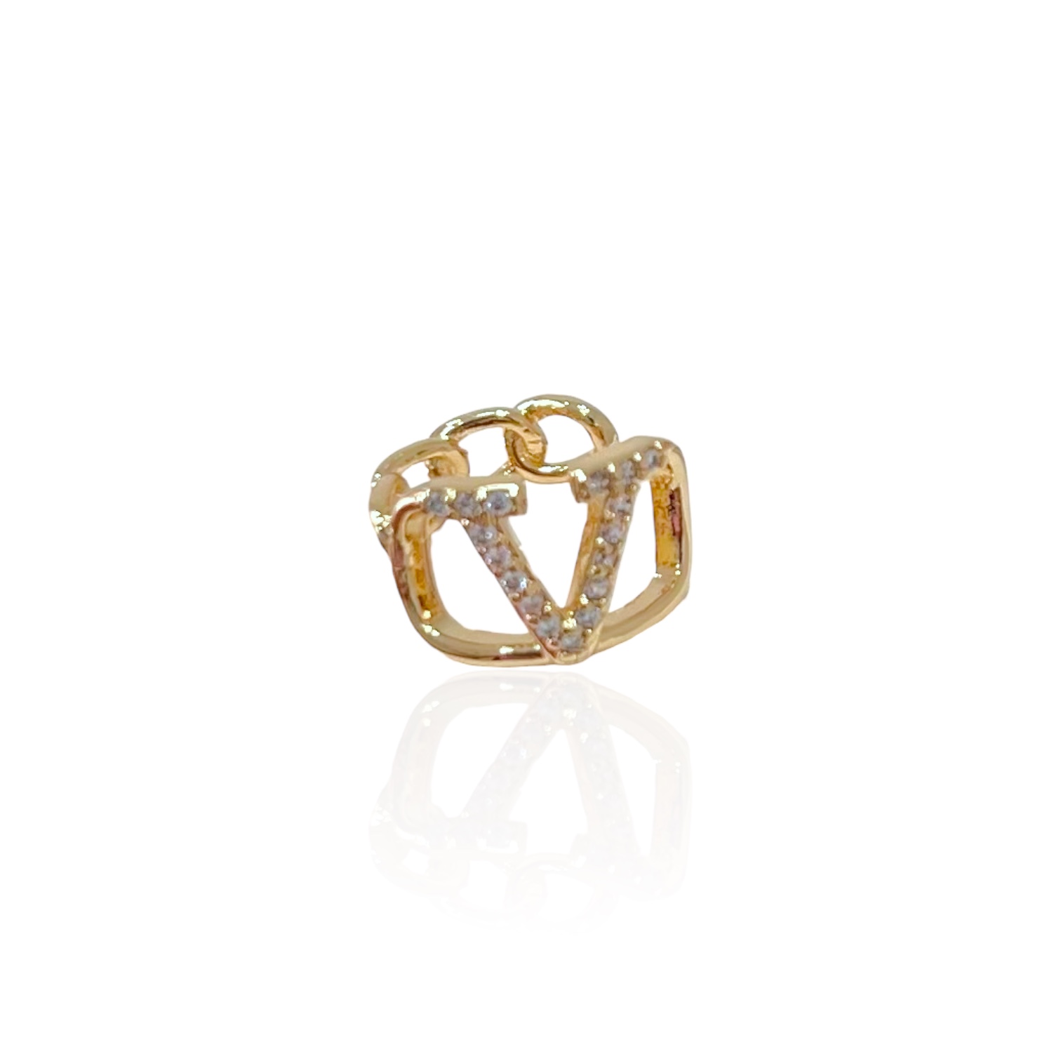 Piercing Fake Folheado Ouro 18k e Prata 925 V Inspired Cravejado