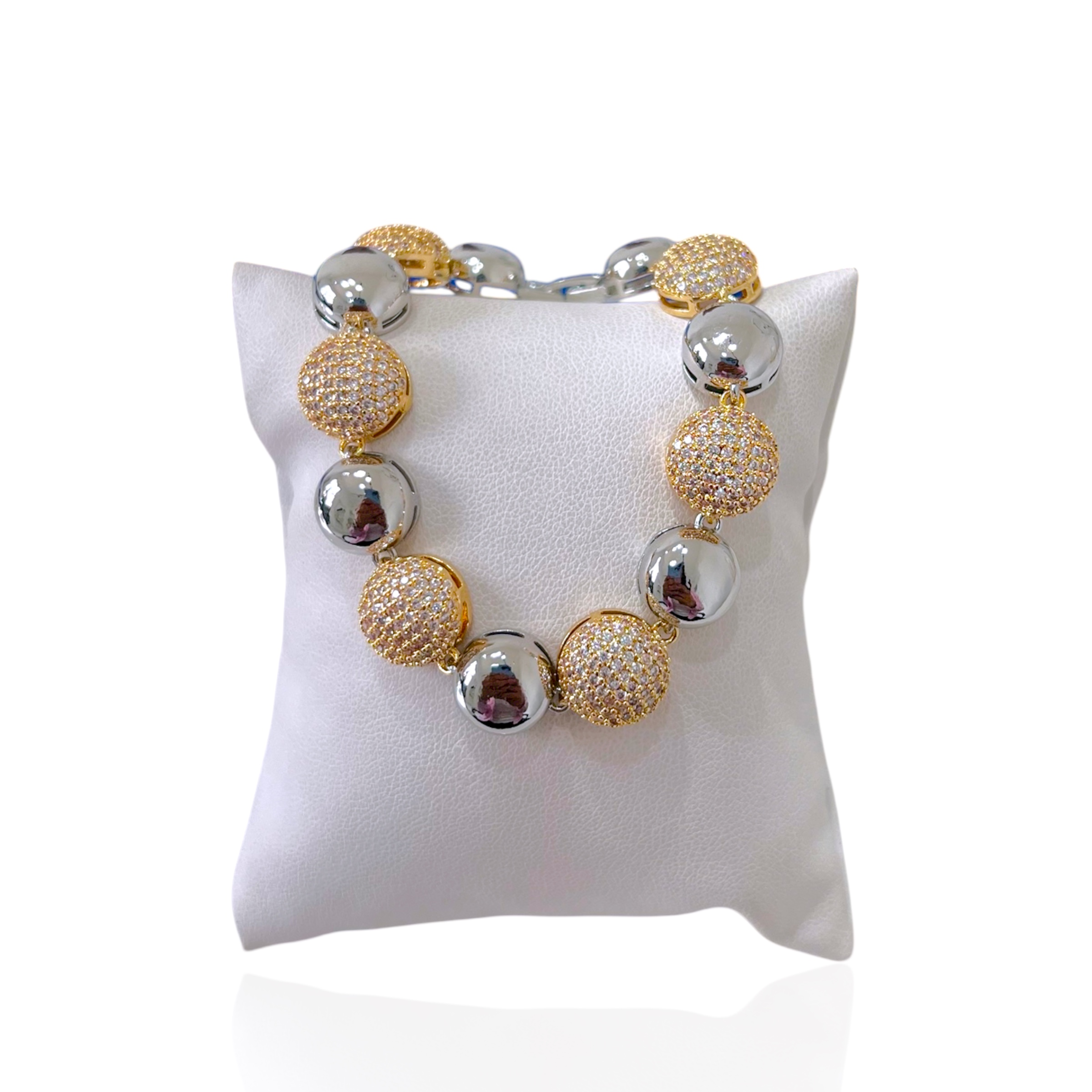 Pulseira Folheada Dois Banhos Redondo Cravejado