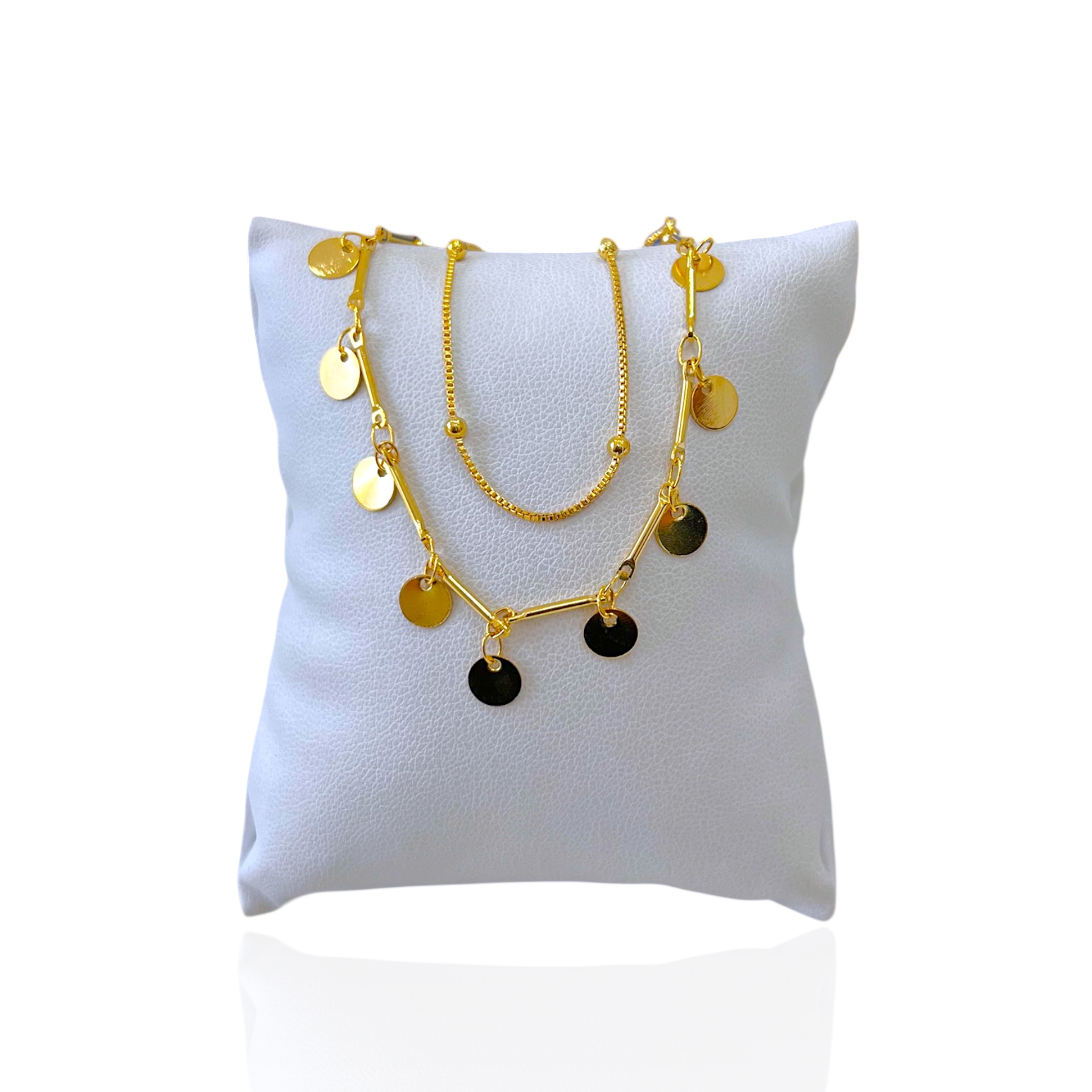 Pulseira Folheada Ouro 18k Dupla Bolinhas Discos