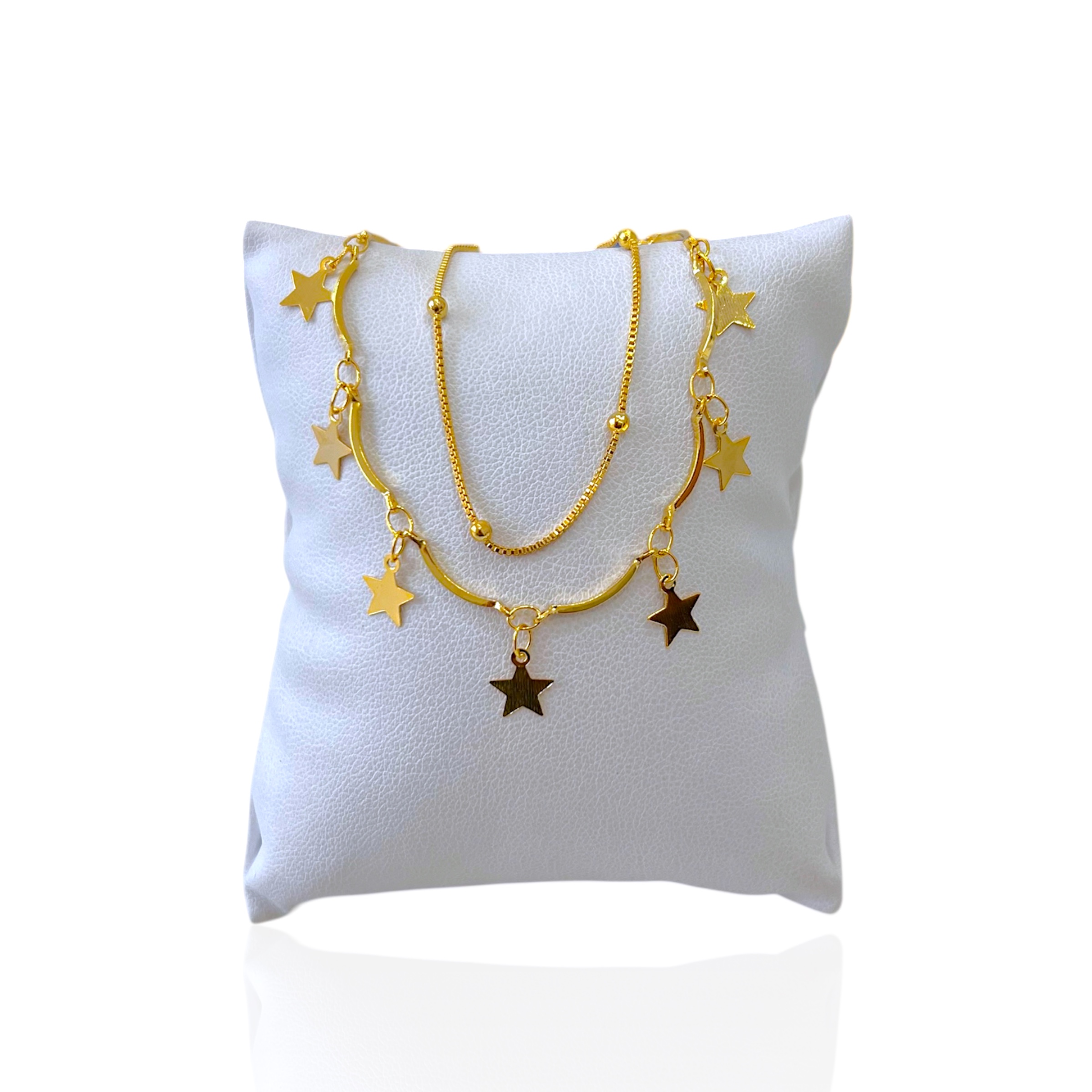 Pulseira Folheada Ouro 18k Dupla Bolinhas Estrelas
