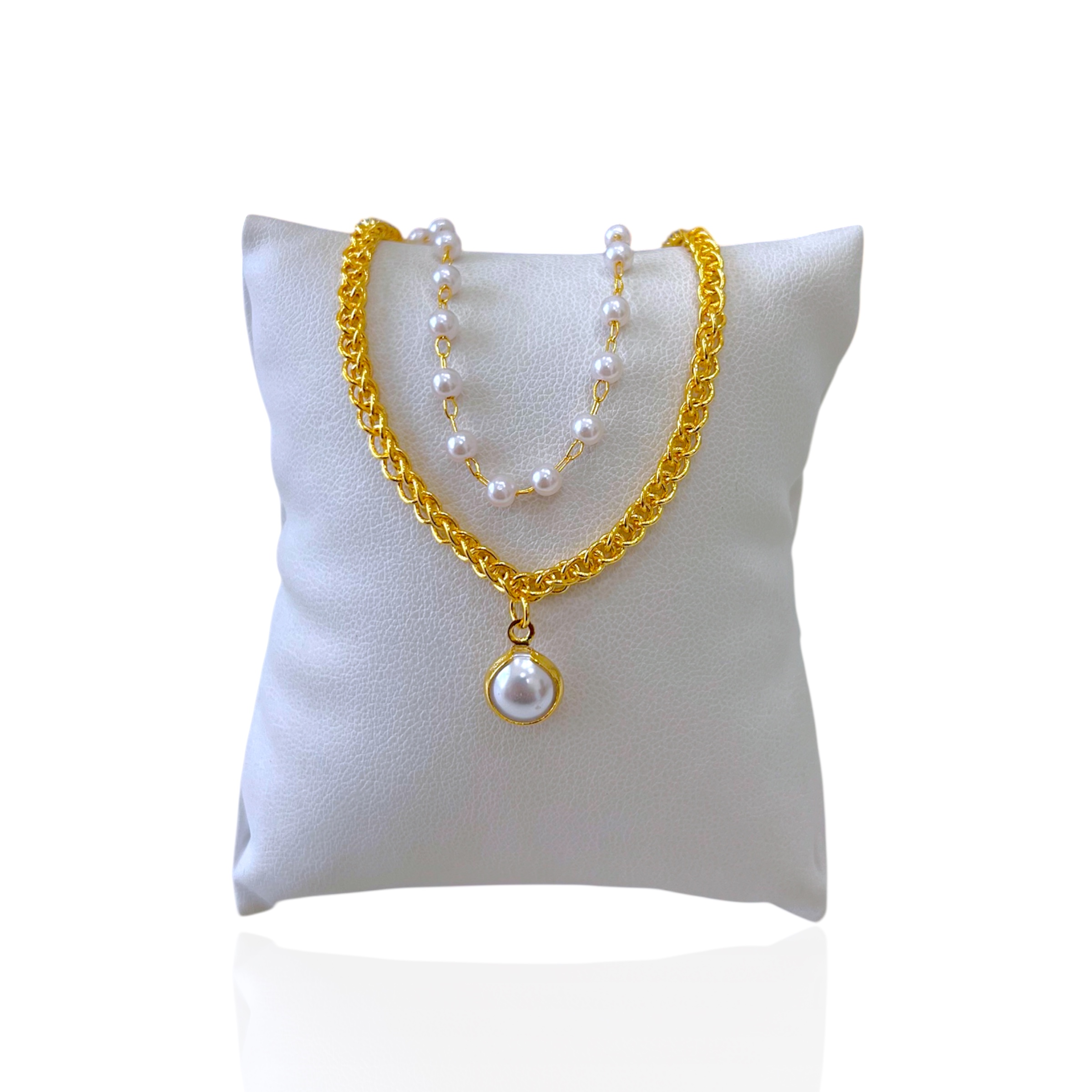 Pulseira Folheada Ouro 18k Dupla Elos trançado Bolinhas Pérolas