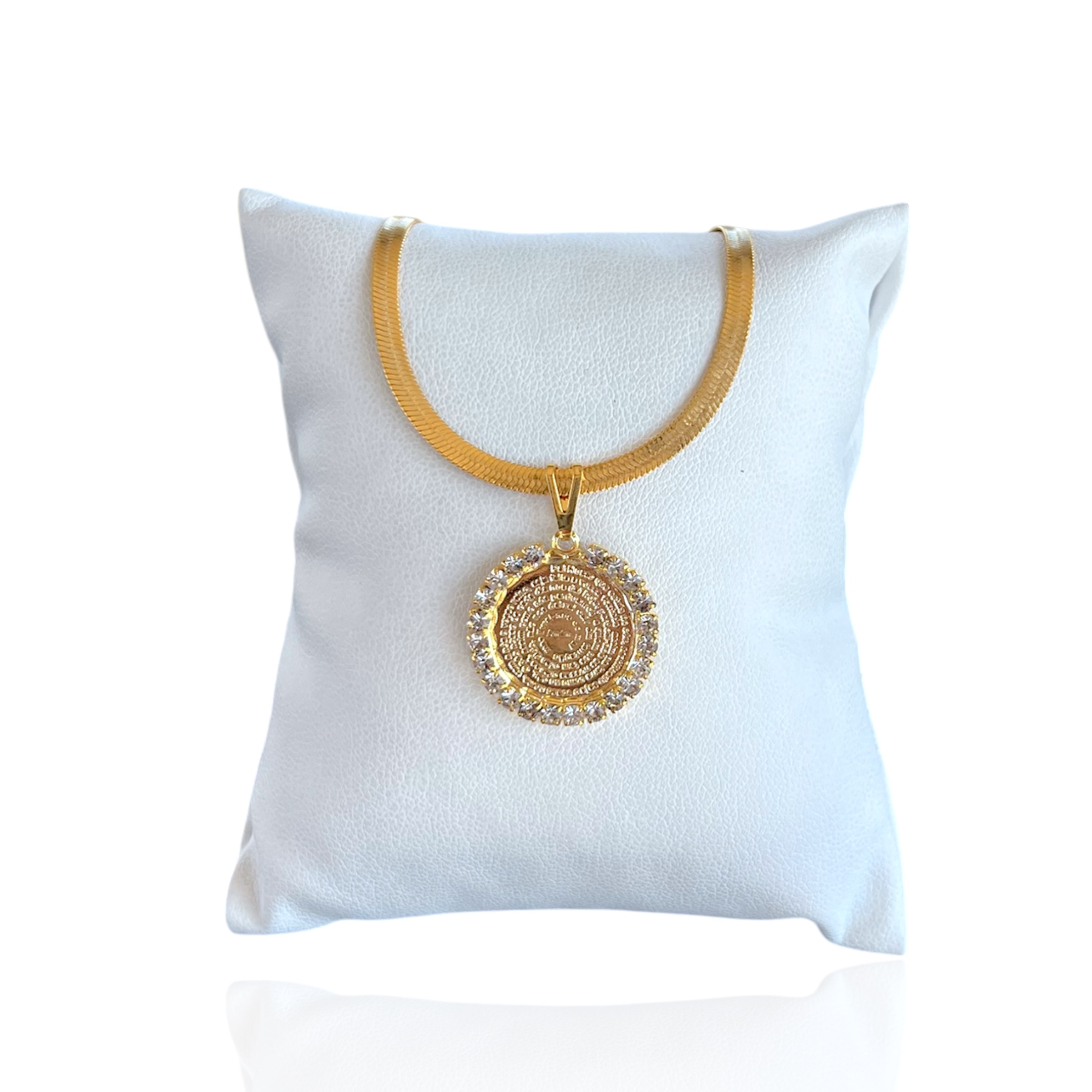 Pulseira Folheada Ouro 18k e Prata 925 Fita Laminada Pai Nosso Strass