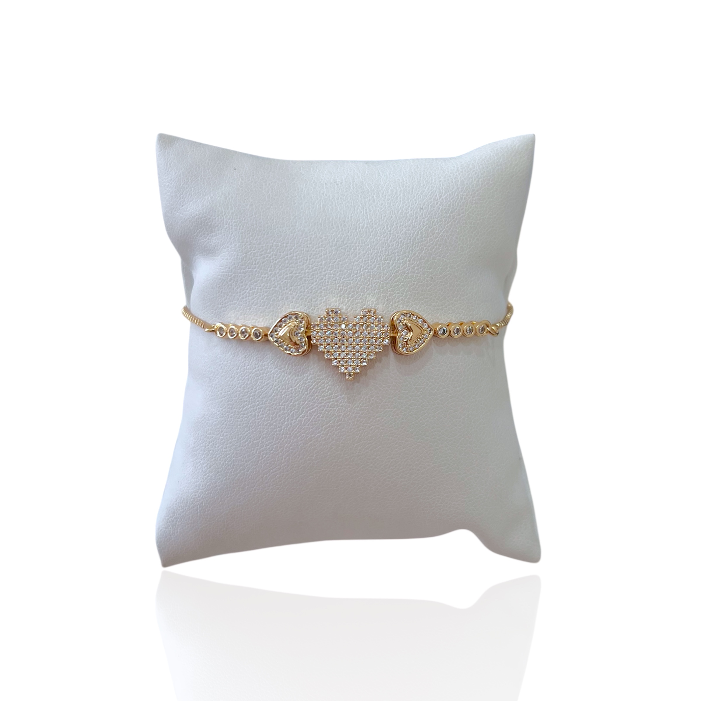 Pulseira Folheada Ouro 18k e Prata 925 Shambala Coração Cravejado