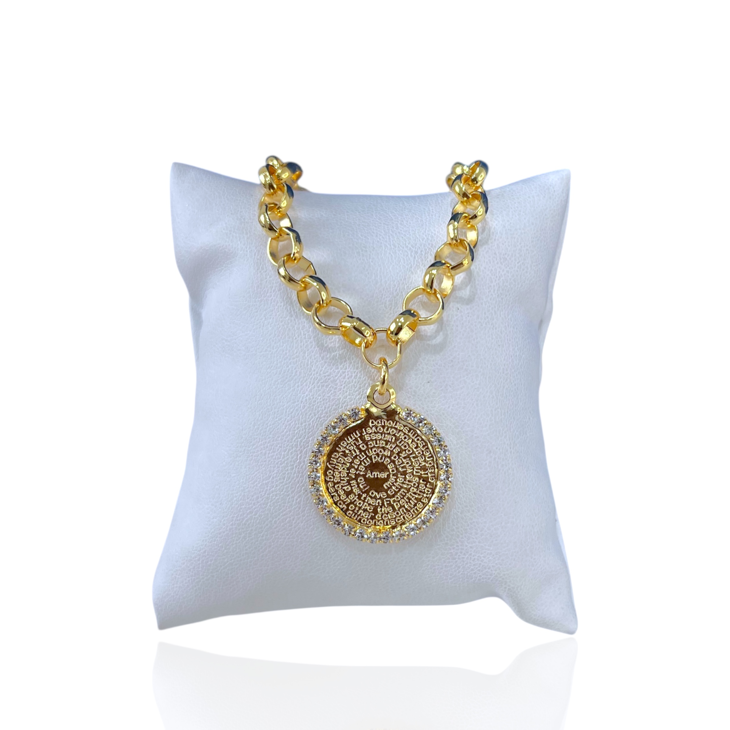 Pulseira Folheada Ouro 18k Elos Português Pai Nosso Strass
