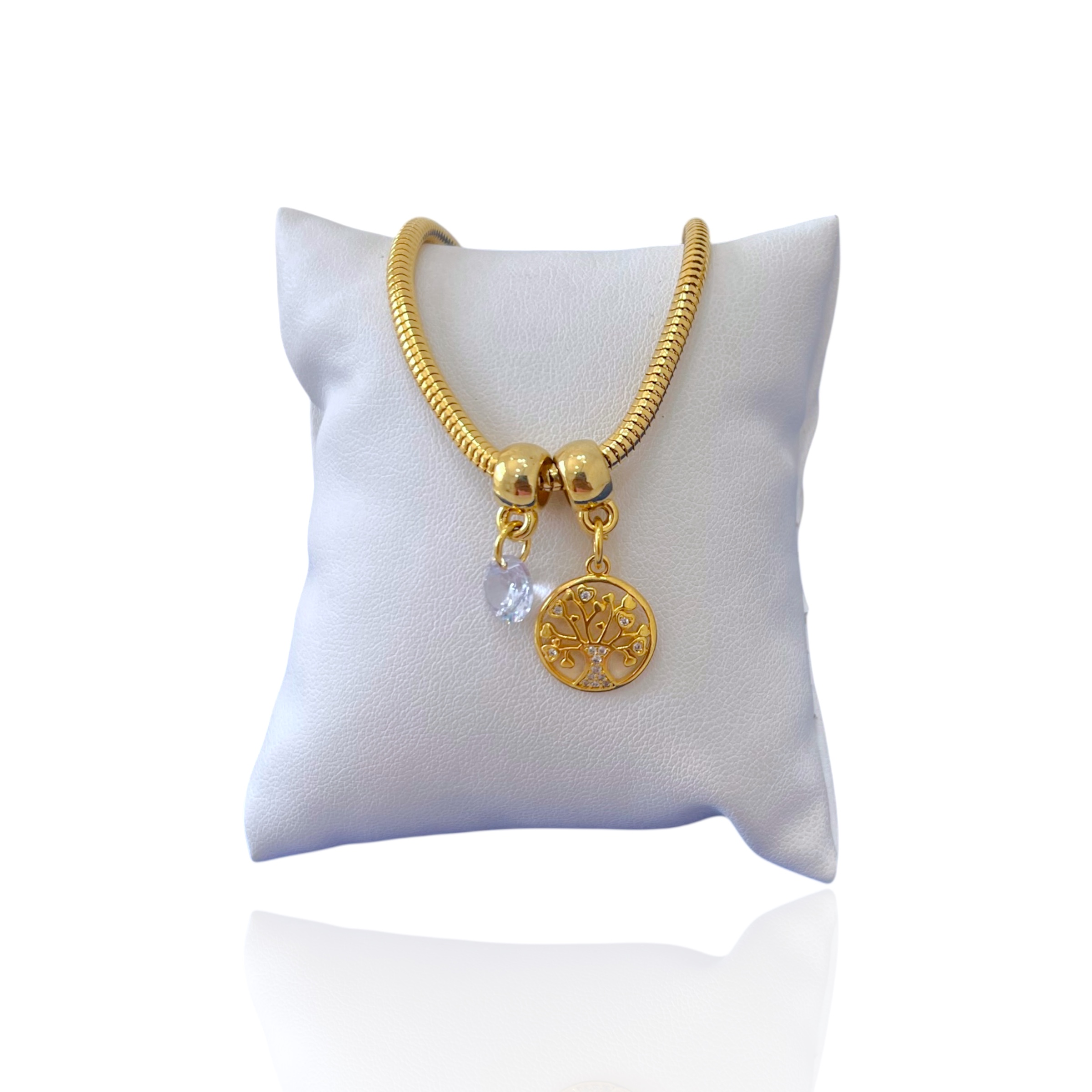 Pulseira Folheada Ouro 18k Malha Árvore da Vida Cravejada Ponto de Luz