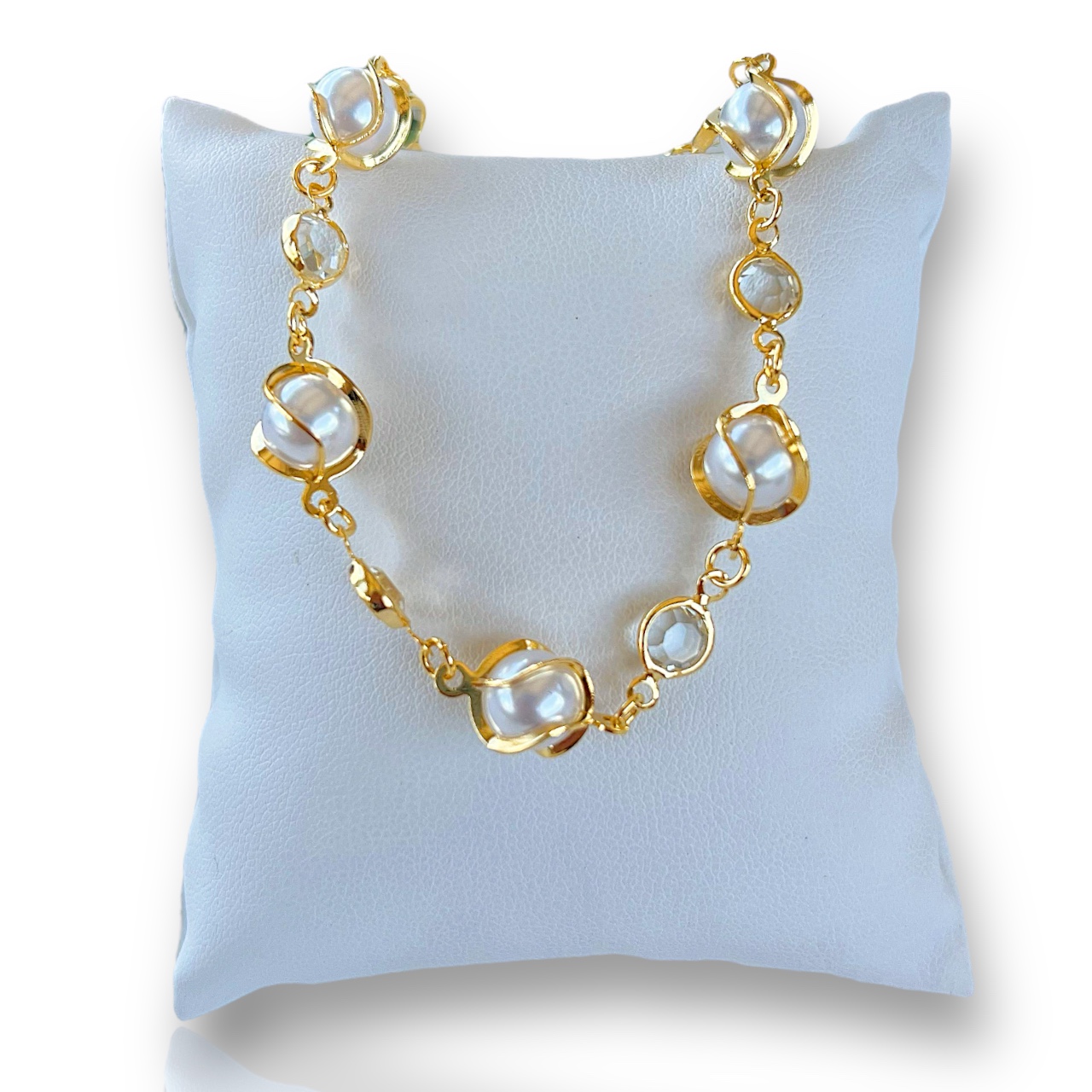Pulseira Folheada Ouro 18k Pérolas Ponto de Luz