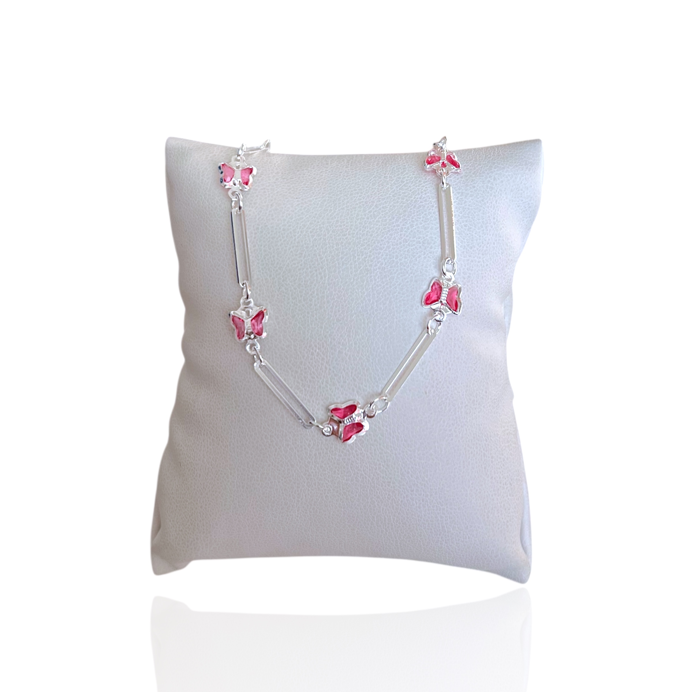 Pulseira Folheada Prata 925 Borboletas Cristais
