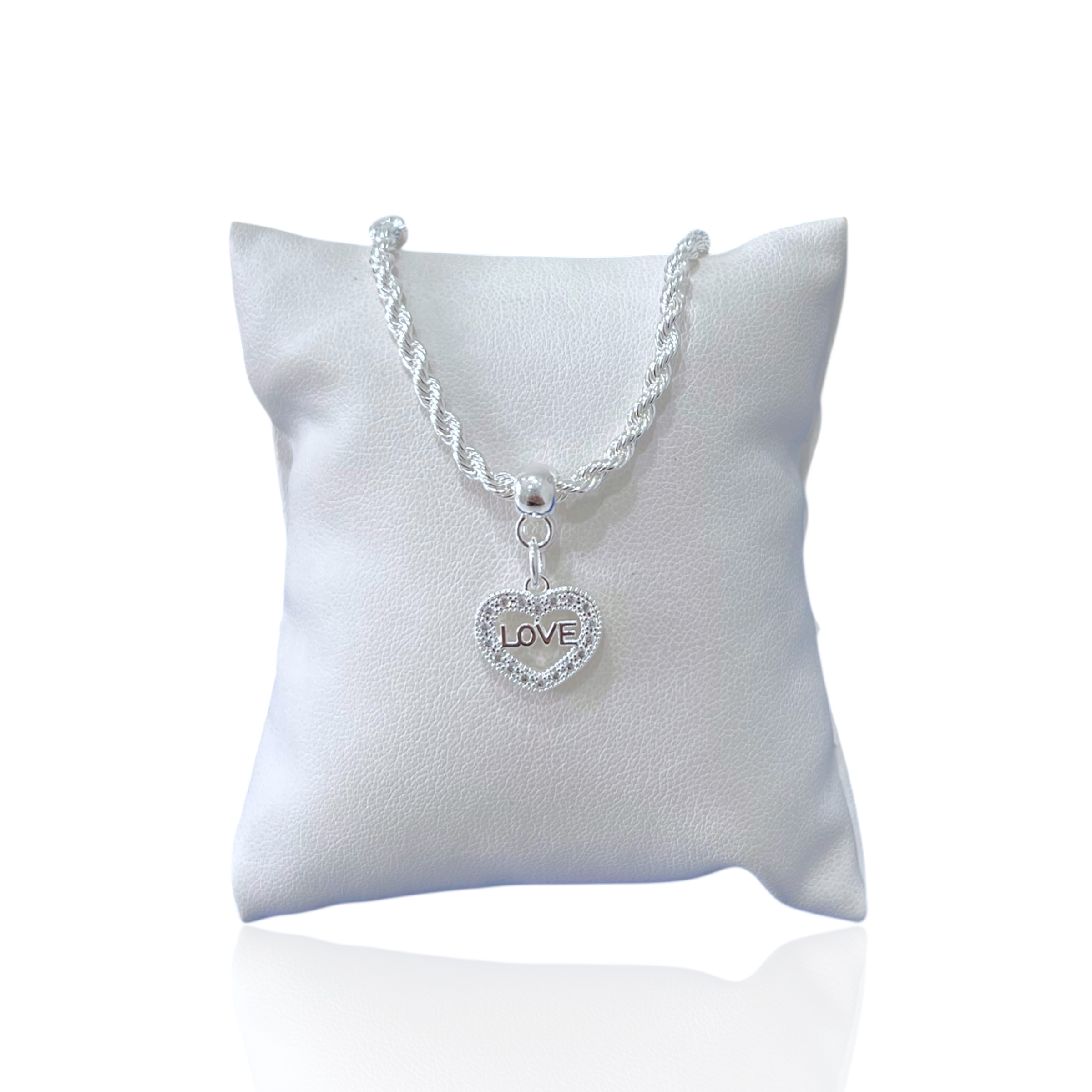 Pulseira Folheada Prata 925 Cordão Baiano Coração Love Cravejado