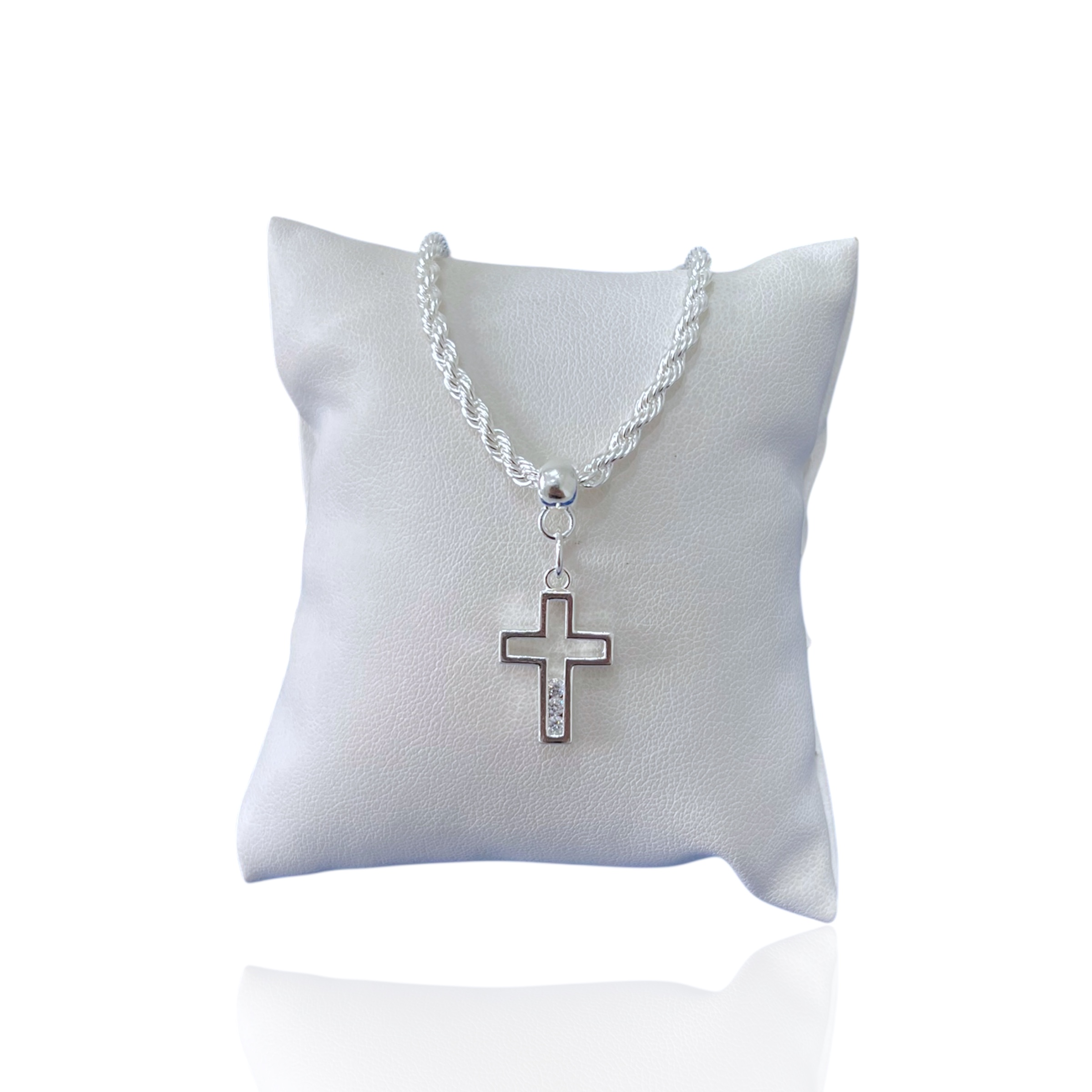 Pulseira Folheada Prata 925 Cordão Baiano Cruz Cravejada