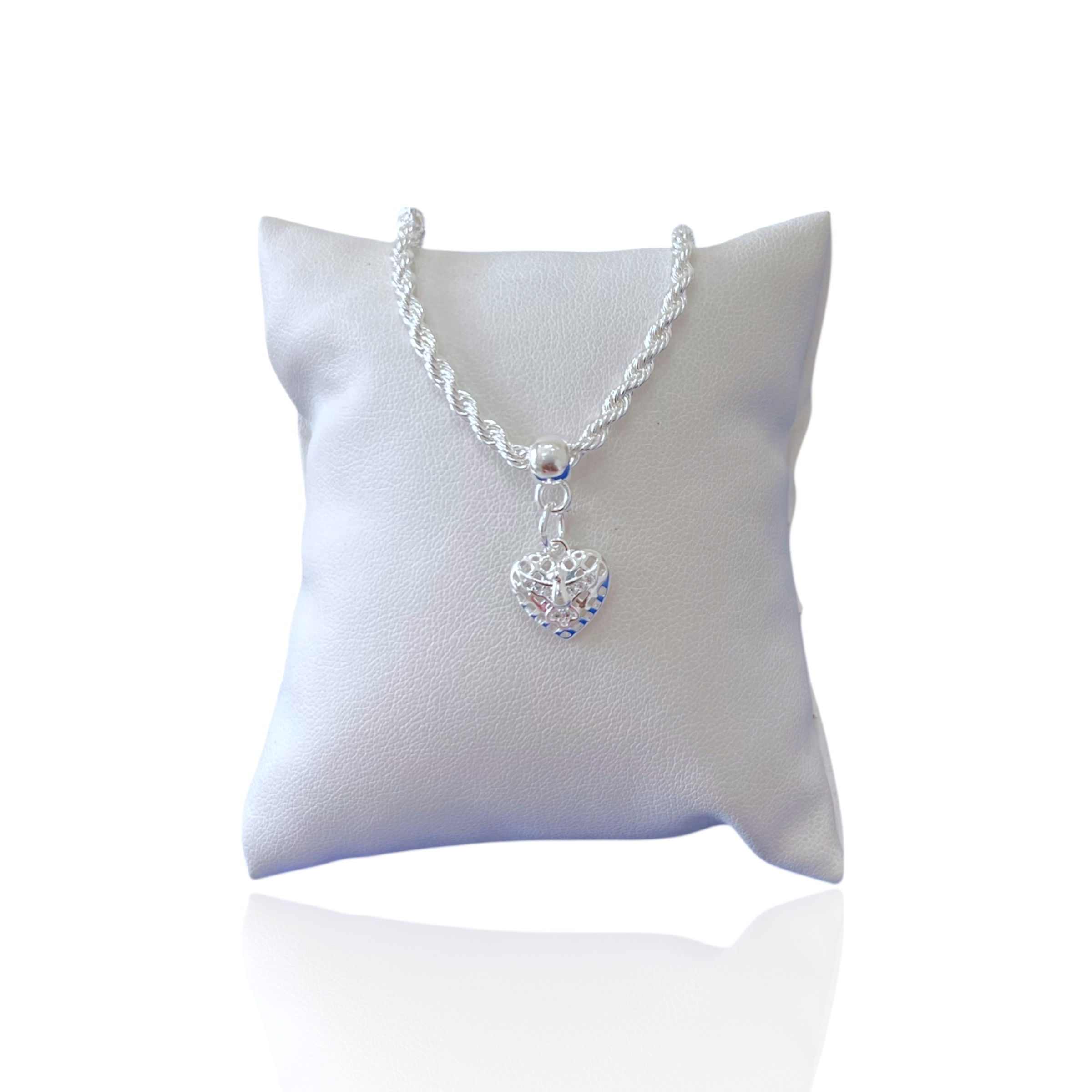 Pulseira Folheada Prata 925 Cordão Baiano Coração Espírito Santo Cravejado