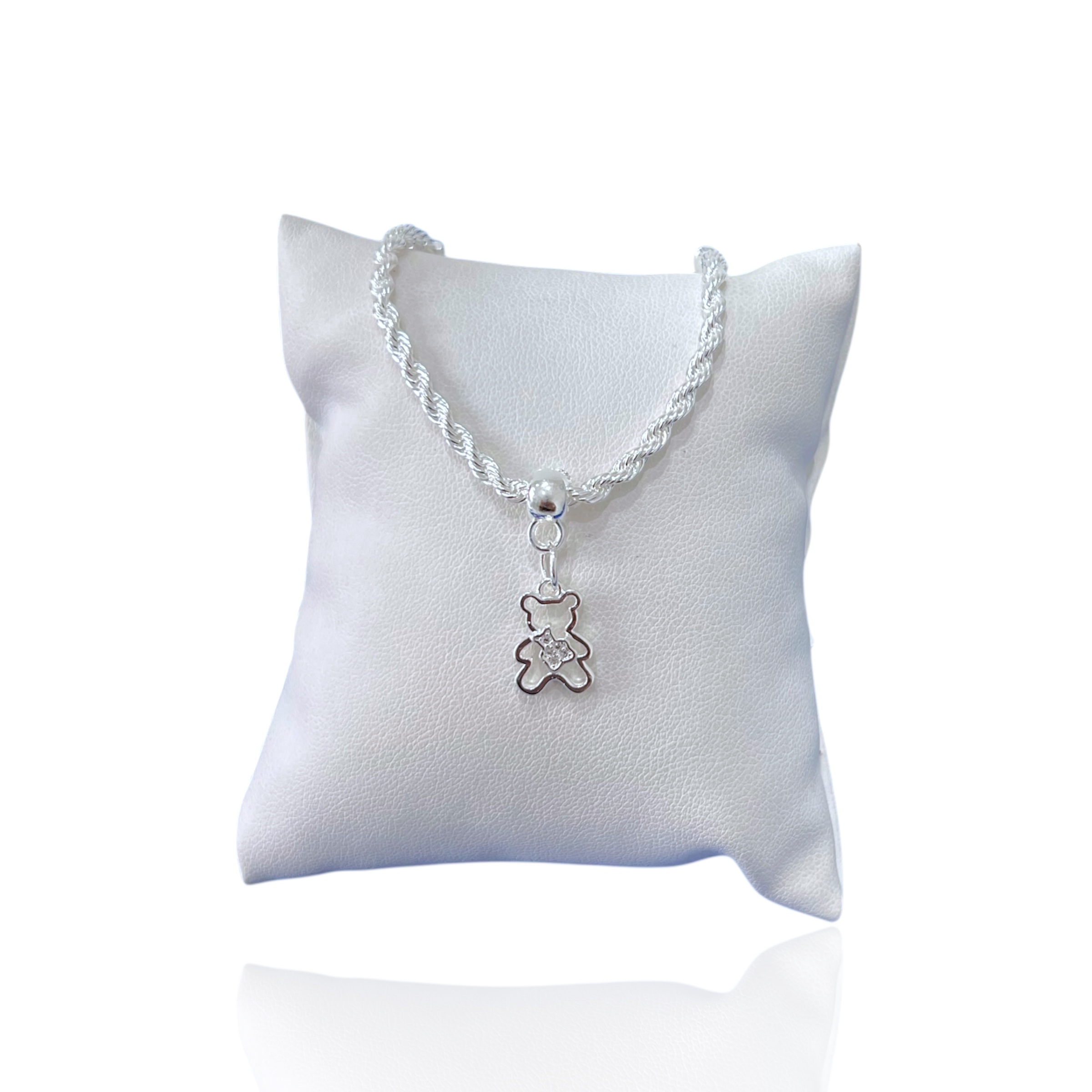 Pulseira Folheada Prata 925 Cordão Baiano Urso Cravejado