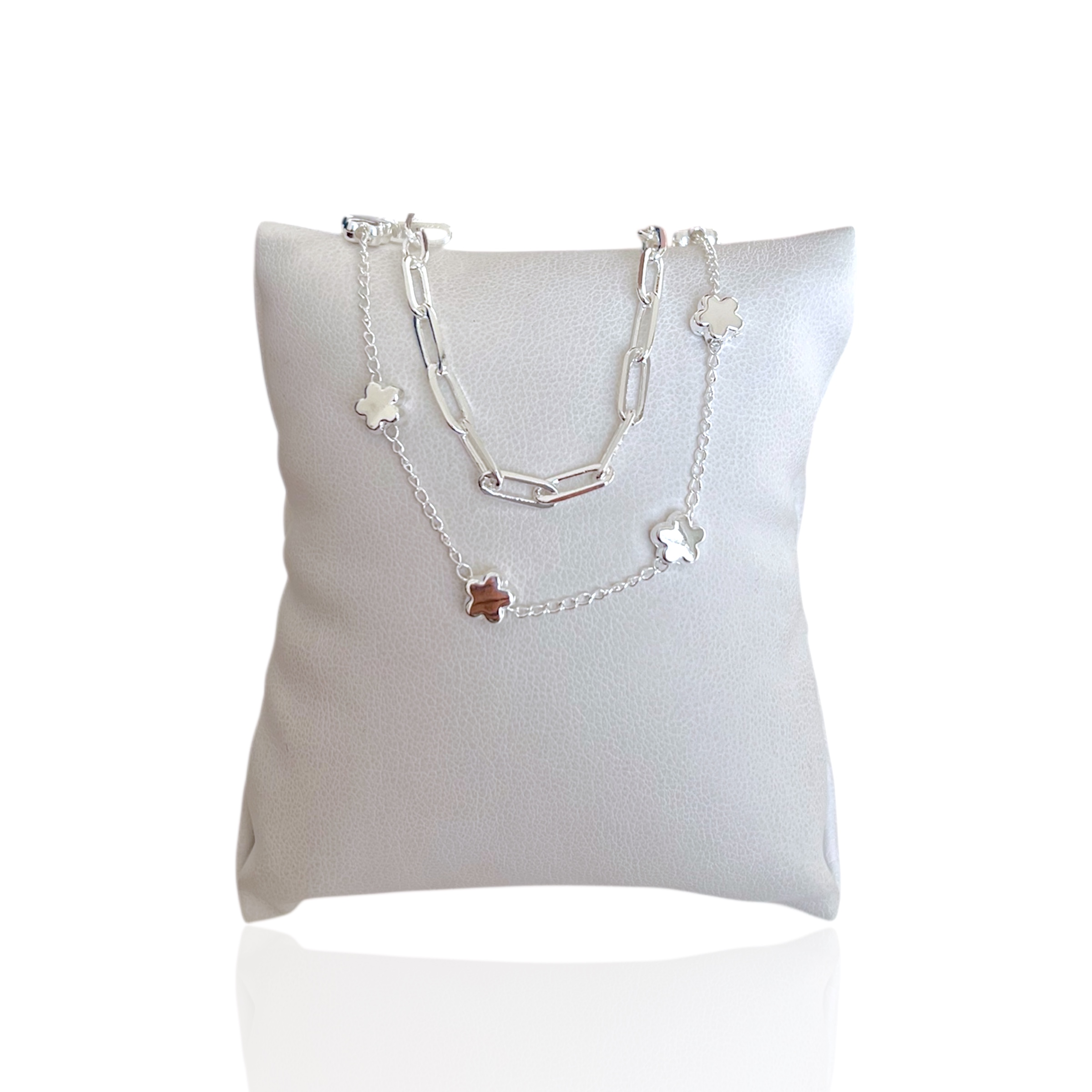 Pulseira Folheada Prata 925 Dupla Elos Flor