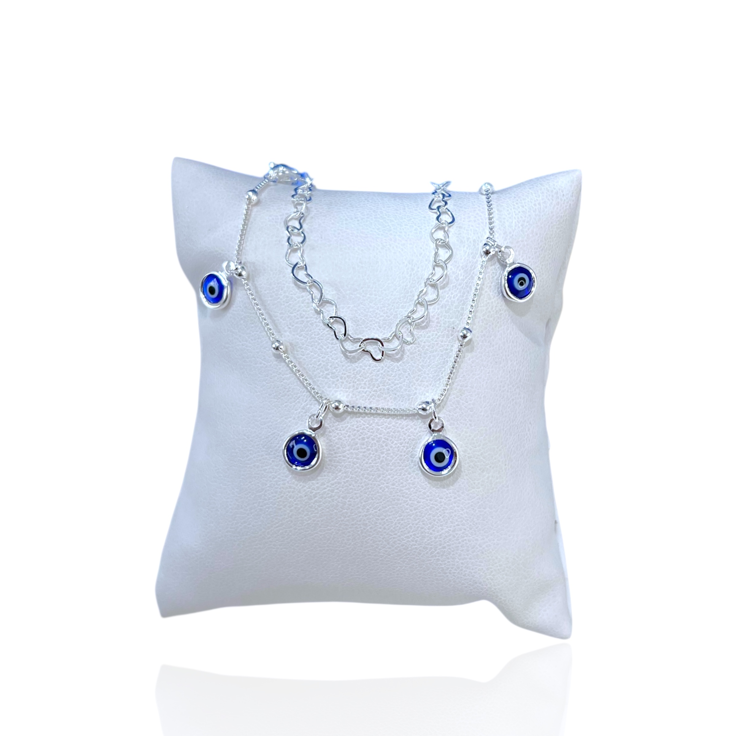 Pulseira Folheada Prata 925 Dupla Olho Grego Corações