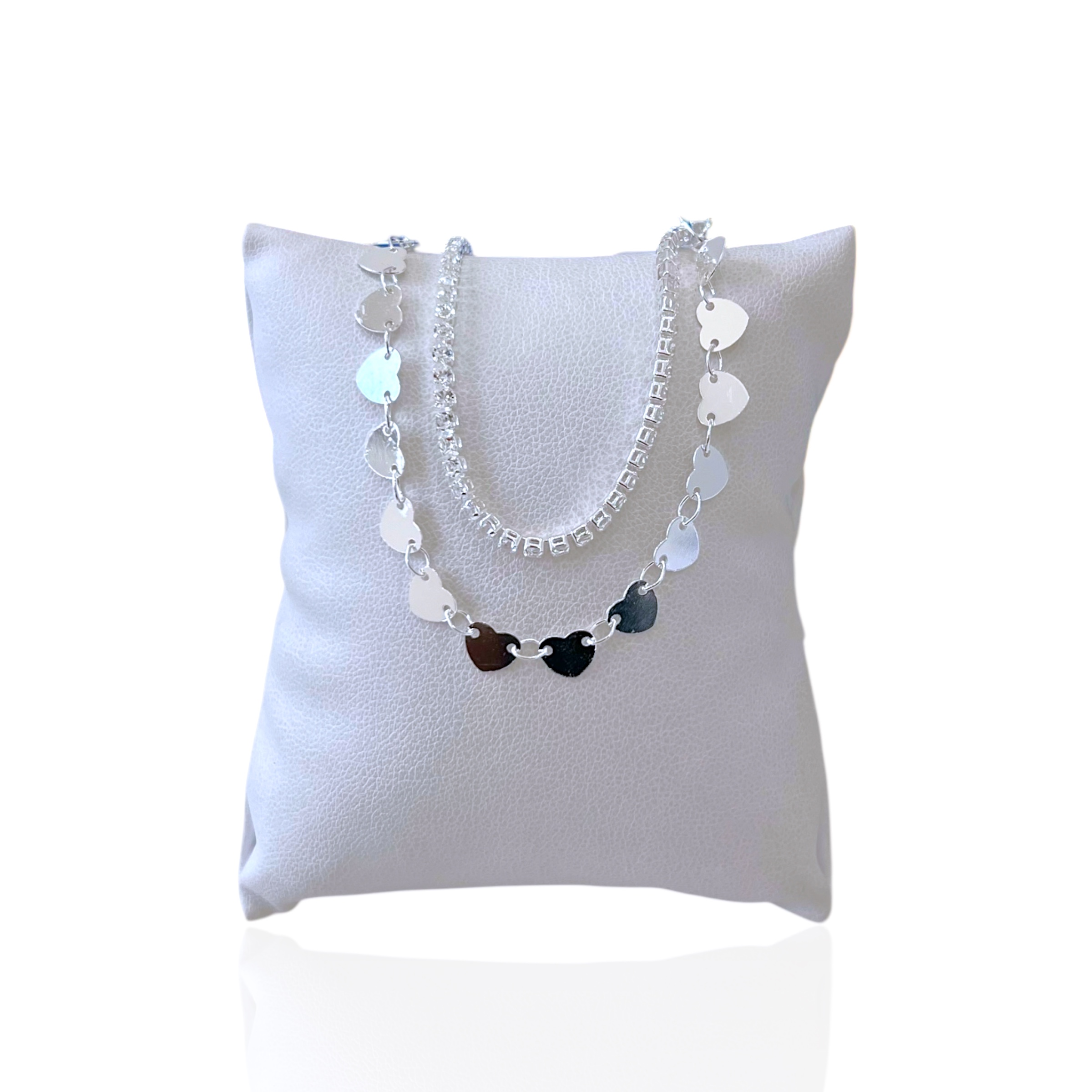 Pulseira Folheada Prata 925 Dupla Riviera Corações