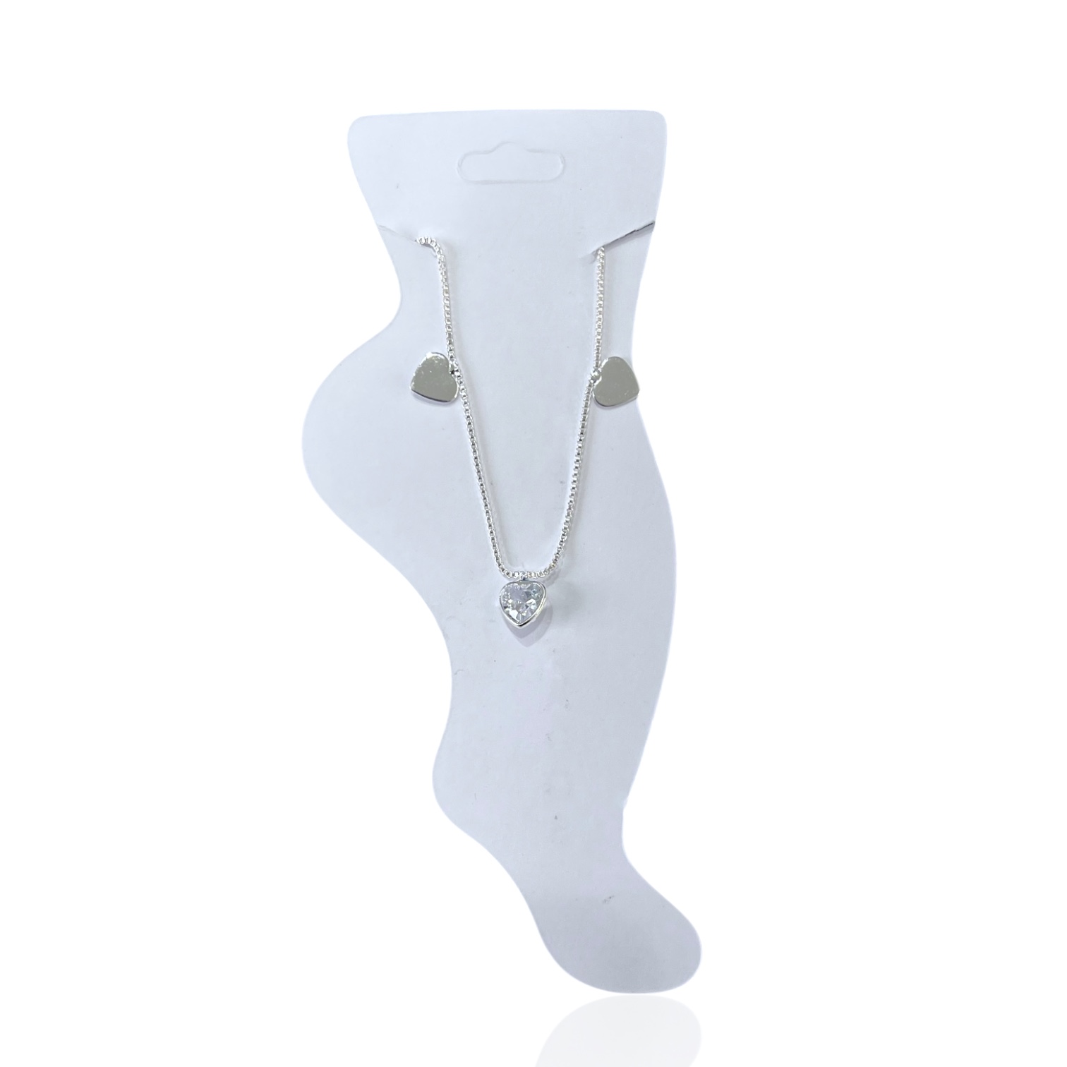 Tornozeleira Folheada Prata 925 Corações Ponto de Luz