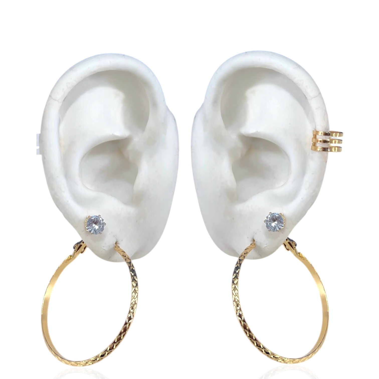 Trio Brincos e Piercing Fake Bijuteria Prata e Dourado Ponto de Luz