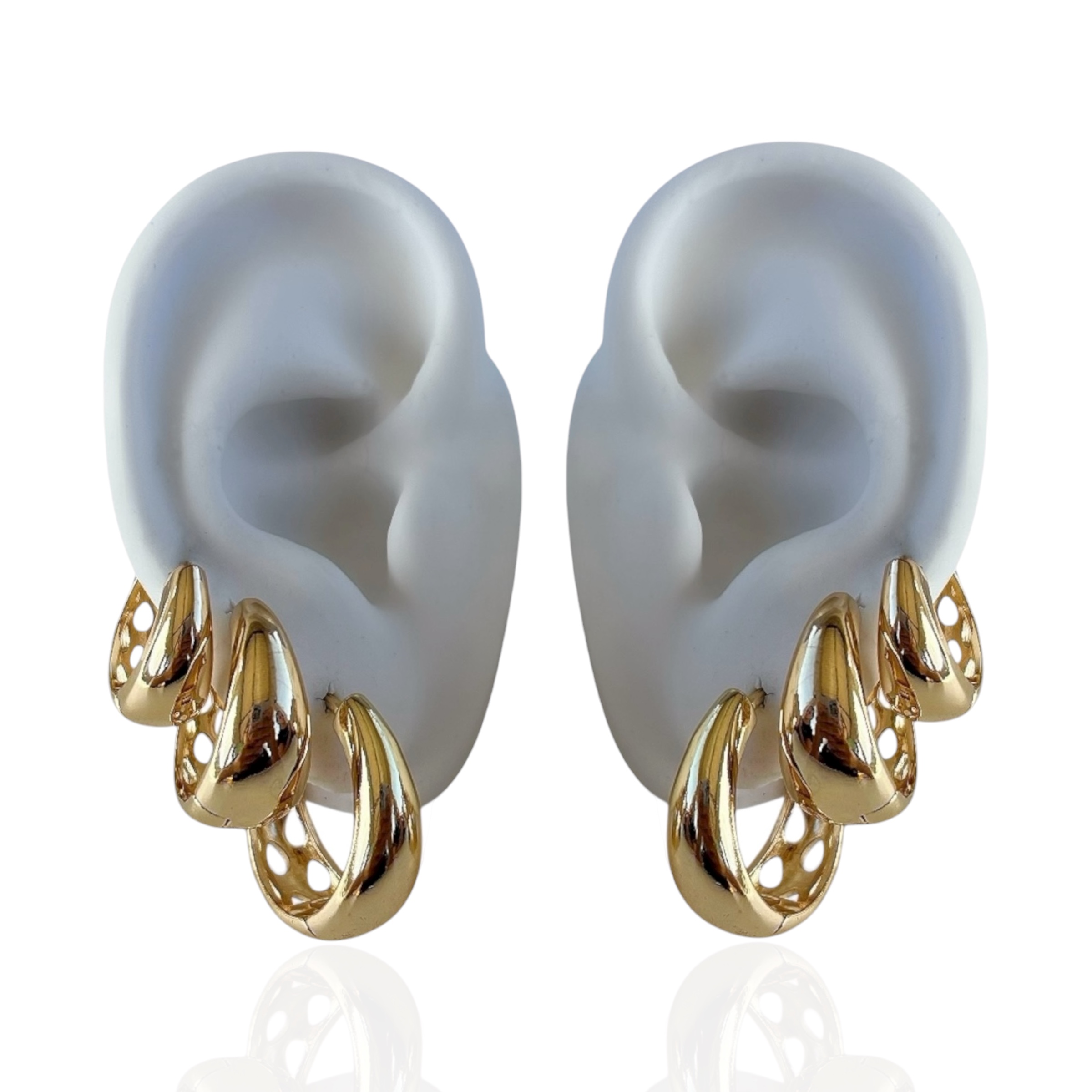 Trio Brincos Folheado Ouro 18k e Prata 925 Argolas Abaulada