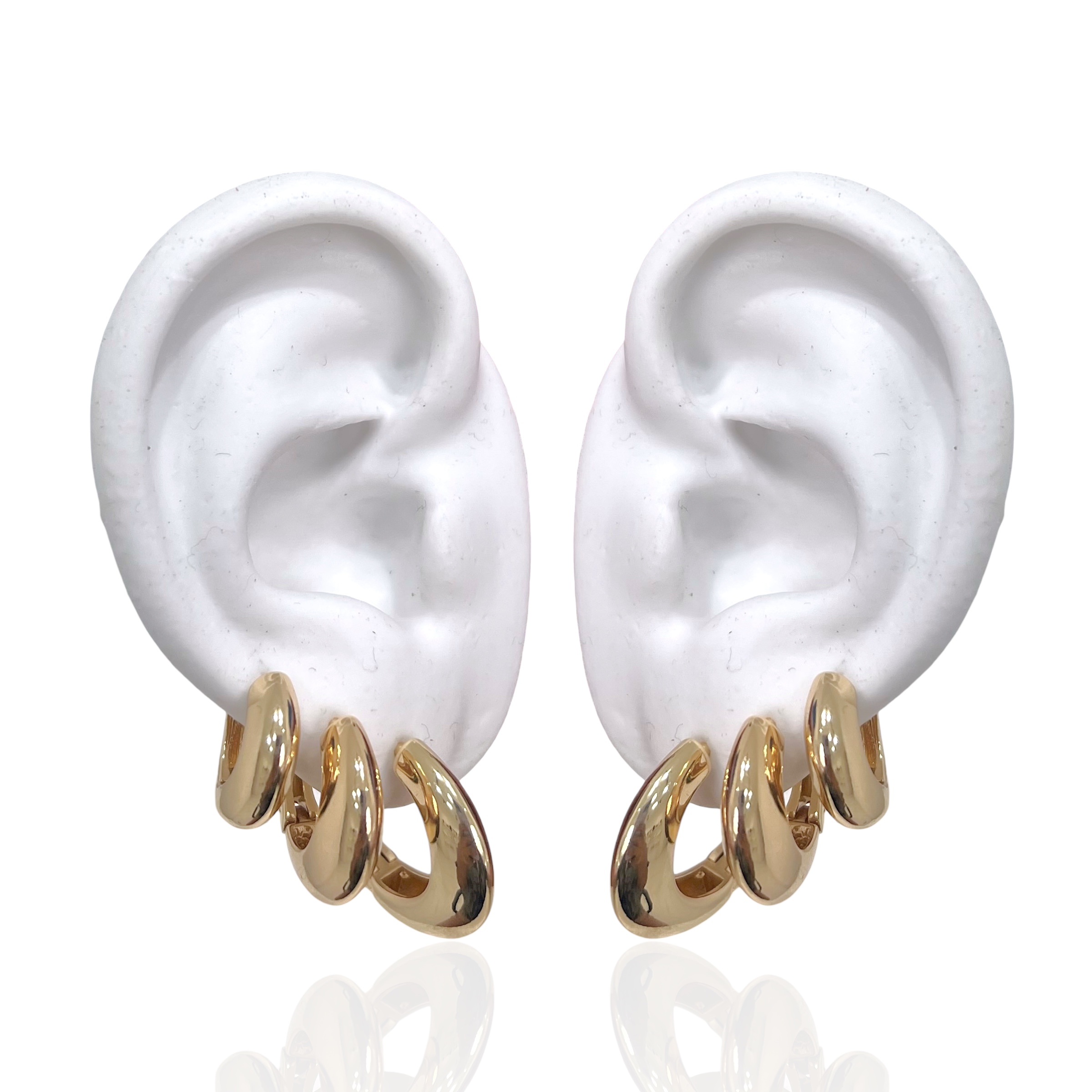 Trio Brincos Folheado Ouro 18k e Prata 925 Argolas Abaulada