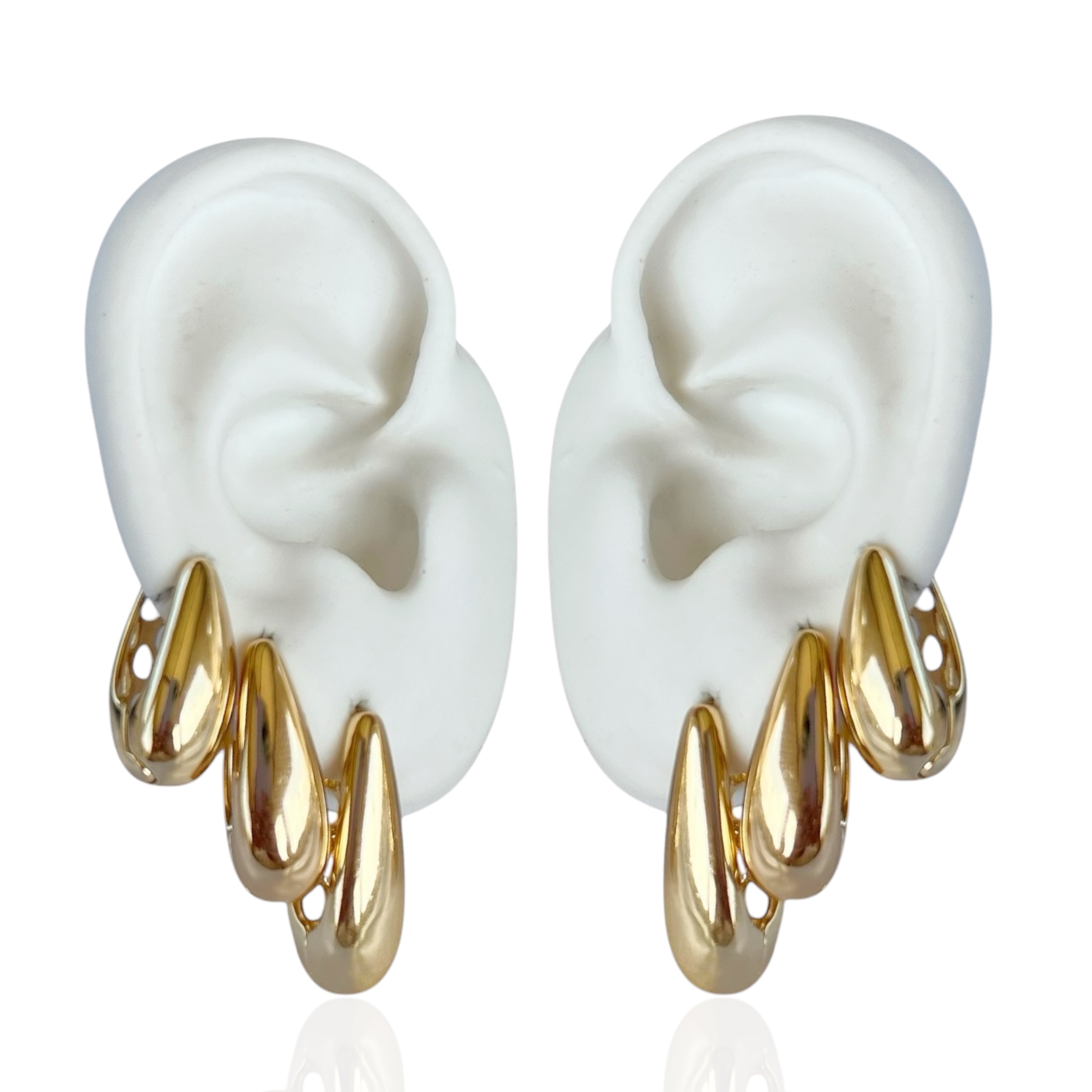 Trio Brincos Folheado Ouro 18k e Prata 925 Argolas Gota Abaulada